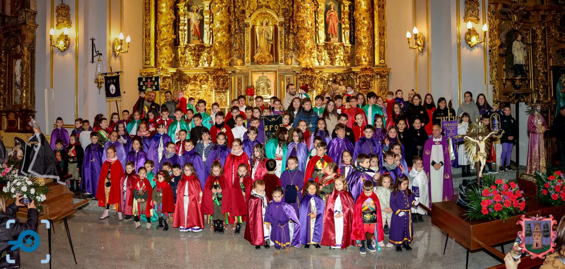 Finalmente, todos los asistentes se refugiaron en el interior de la Iglesia Parroquial de Santa Catalina, donde se realizó la tradicional fotografía con todos los pequeños cofrades como recuerdo de esta entrañable jornada.