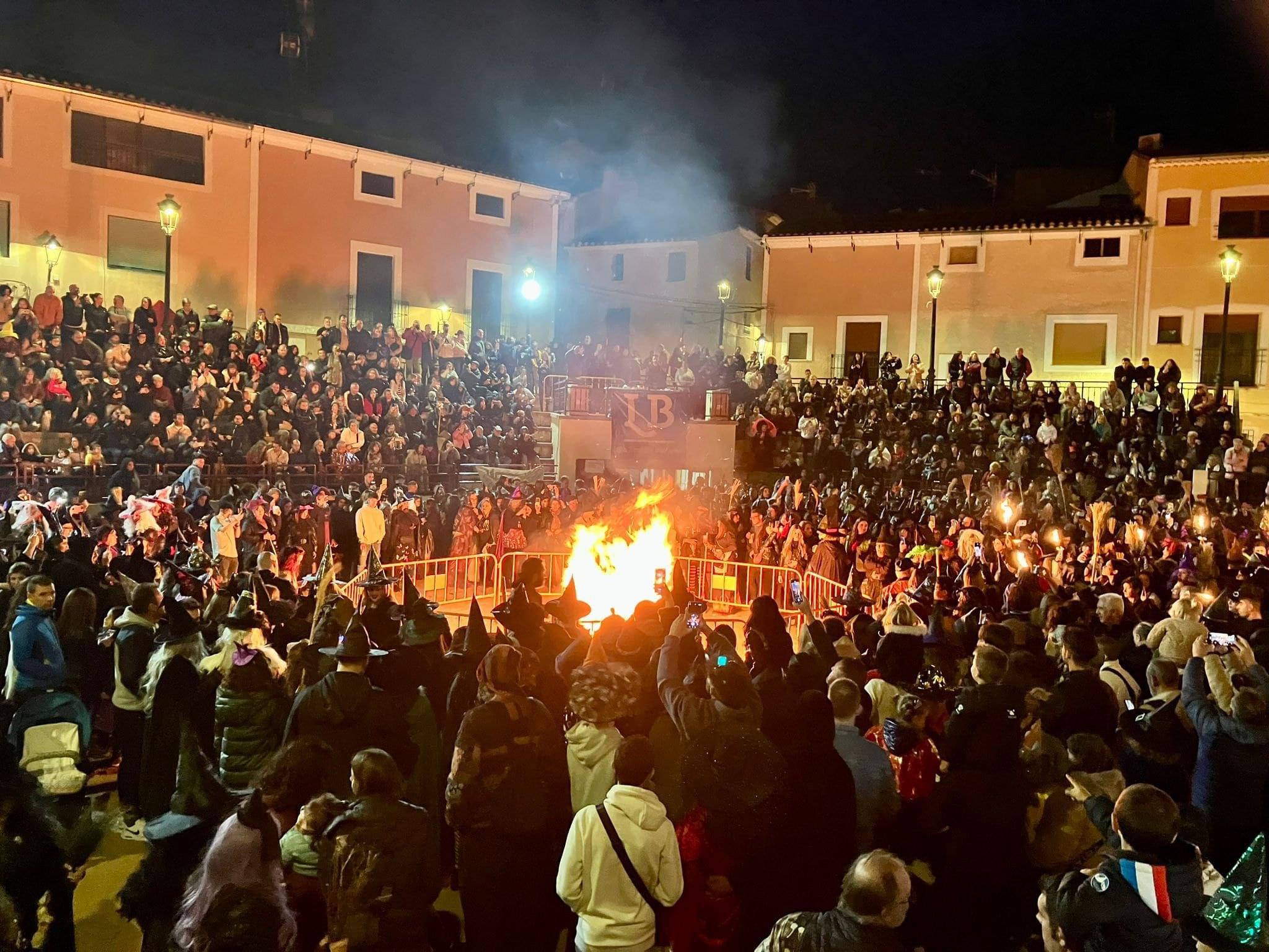 El sábado será la jornada central: el gran desfile de brujas y brujos recorrerá las calles al ritmo de la batucada de Sambasores hasta desembocar en la Plaza de Toros. La tarde estará llena de magia familiar, espectáculos, actividades infantiles y una masterclass de zumba con Virginia Escámez. A las 20 horas llegará el momento más esperado: el Conjuro del Fuego Mágico y el traslado de antorchas hasta la Plaza de Toros, acompañados por la Banda Municipal Santiago Apóstol y la voz de Merce Chávez, culminando con un espectáculo de fuego y danza bajo la luz de las llamas.