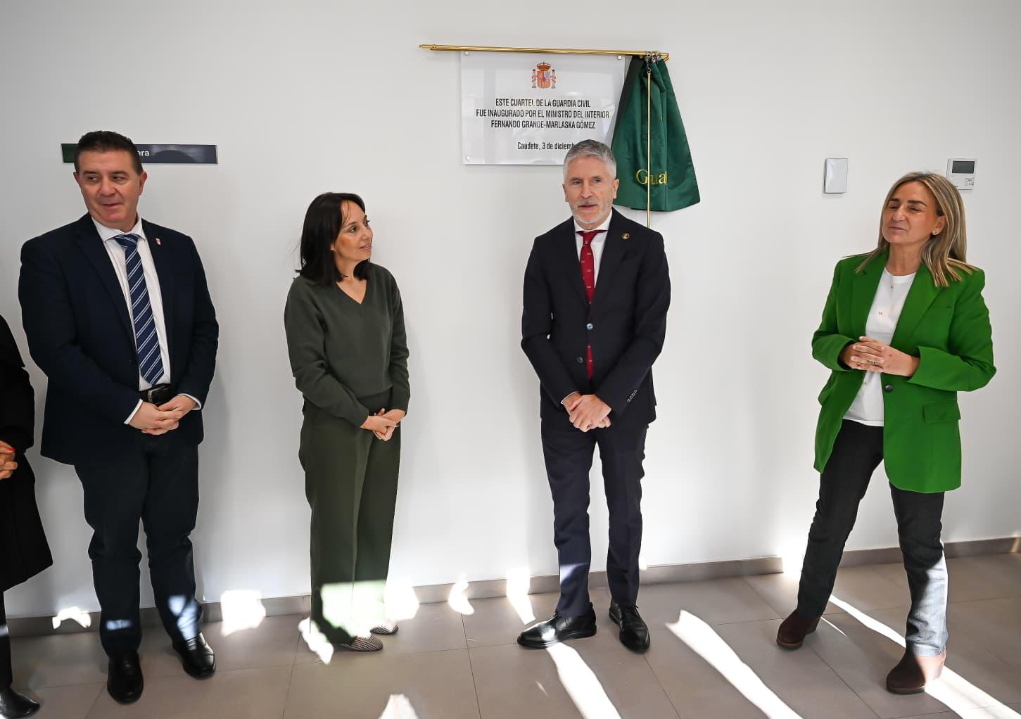 Grande-Marlaska ha inaugurado este miércoles el nuevo cuartel de la Guardia Civil en Caudete (Albacete), acto al que han asistido la directora general de la Guardia Civil, Mercedes González; la delegada de Gobierno en Castilla-La Mancha, Milagros Tolón; la presidenta de la Sociedad de Infraestructuras y Equipamientos Penitenciarios y de la Seguridad del Estado (SIEPSE), Sofía Hernanz, y el alcalde de Caudete, José Miguel Mollá, entre otras autoridades.