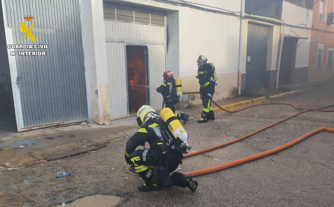 Efectivos de la Guardia Civil de Madrigueras han rescatado a dos personas a consecuencia de un incendio de gran envergadura ocasionado en el garaje de su vivienda, ubicada en la población madriguerense.
