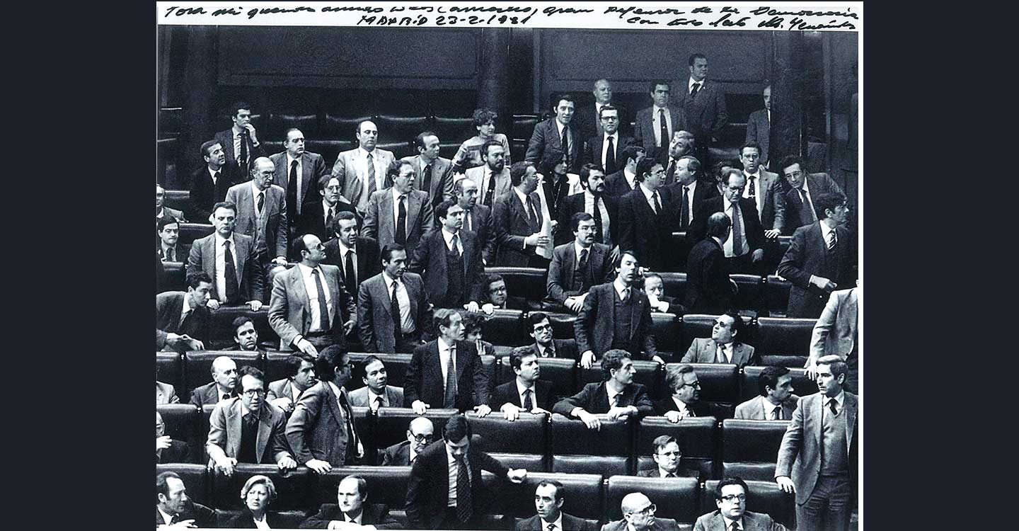 Vivía con mi madre y en el portal de al lado vivía su hermano, mi Tío, Blas Camacho, Tomellosero de “pro” y nombrado recientemente Hijo Predilecto de Tomelloso. Casualmente tanto él, Blas, como su mujer, Mary Cruz, se encontraban físicamente dentro del hemiciclo. El como Diputado Electo en esa Legislatura en los escaños del Parlamento y ella en la parte de invitados en la parte de arriba del hemiciclo (ver foto del momento). Al llegar a casa me acerqué a su casa ya que mis Tíos tienen 6 hijos y el mayor en esos momentos de 1.981 tenía 11 años. Estuve toda la noche en su casa hasta que soltaron a mi Tía, entre el público y de madrugada y posteriormente ya amaneciendo al resto de los Diputados. Pasamos miedo, incertidumbre y muchas llamadas por teléfono a casa. No sabíamos nada, únicamente la radio y la televisión. Si nosotros estábamos preocupados, mis Tíos dentro del Hemiciclo me imagino que muy asustados y con la incertidumbre de lo que podía ocurrir.