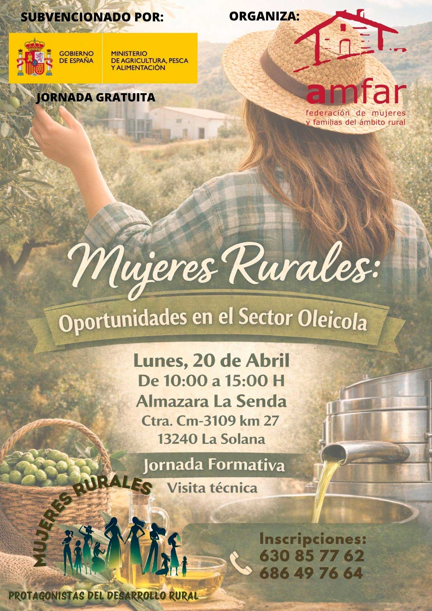 La Federación de Mujeres y Familias del Ámbito Rural (AMFAR) organiza el próximo lunes 20 de abril la jornada técnica “Oportunidades en el sector oleícola”.