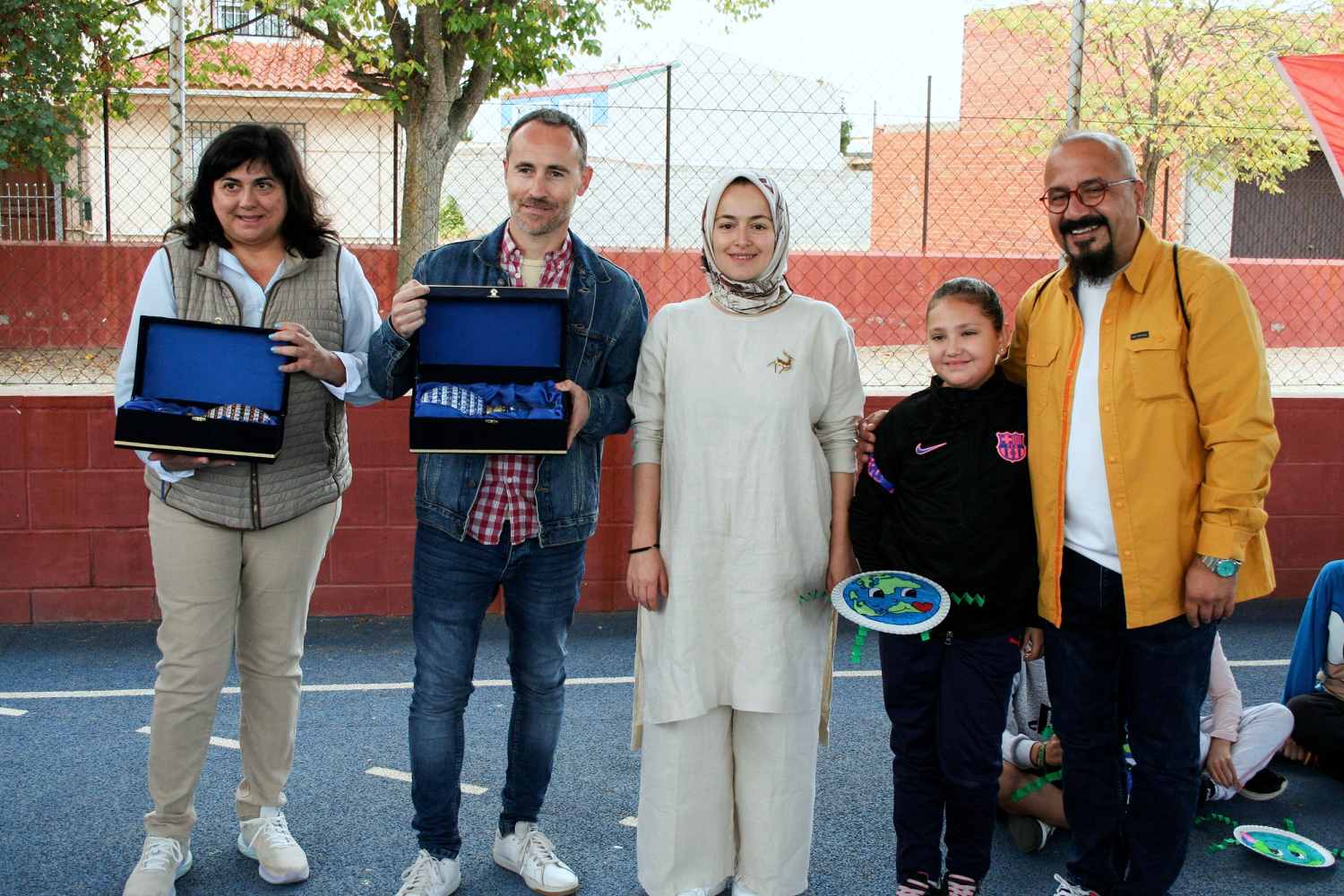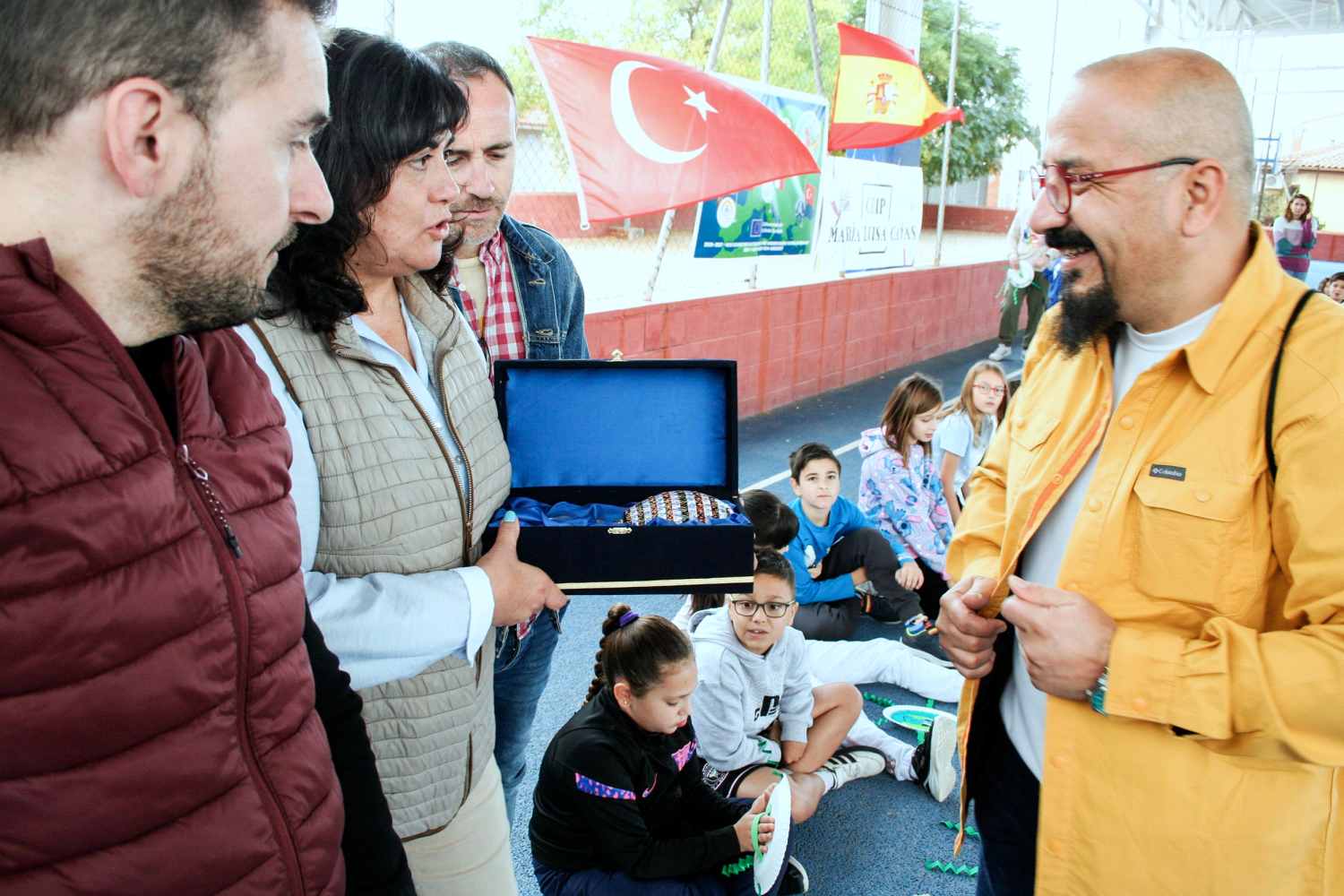 Posteriormente se intercambiaron varios regalos típicos de los lugares de origen entre los centros y con los representantes políticos del Ayuntamiento de Pedro Muñoz para concluir el acto protocolario de recepción con un acto especial de presentación de los centros de Turquía e Italia y sus ciudades de procedencia que se realizó en un aula del CEIP María Luisa Cañas con los alumnos de 1º y 2º de Educación Primaria objetivo de este Programa, en el que el profesor turco y una profesora italiana hicieron un minucioso recorrido por los centros educativos donde desempeñan su labor docente y sus ciudades de origen.