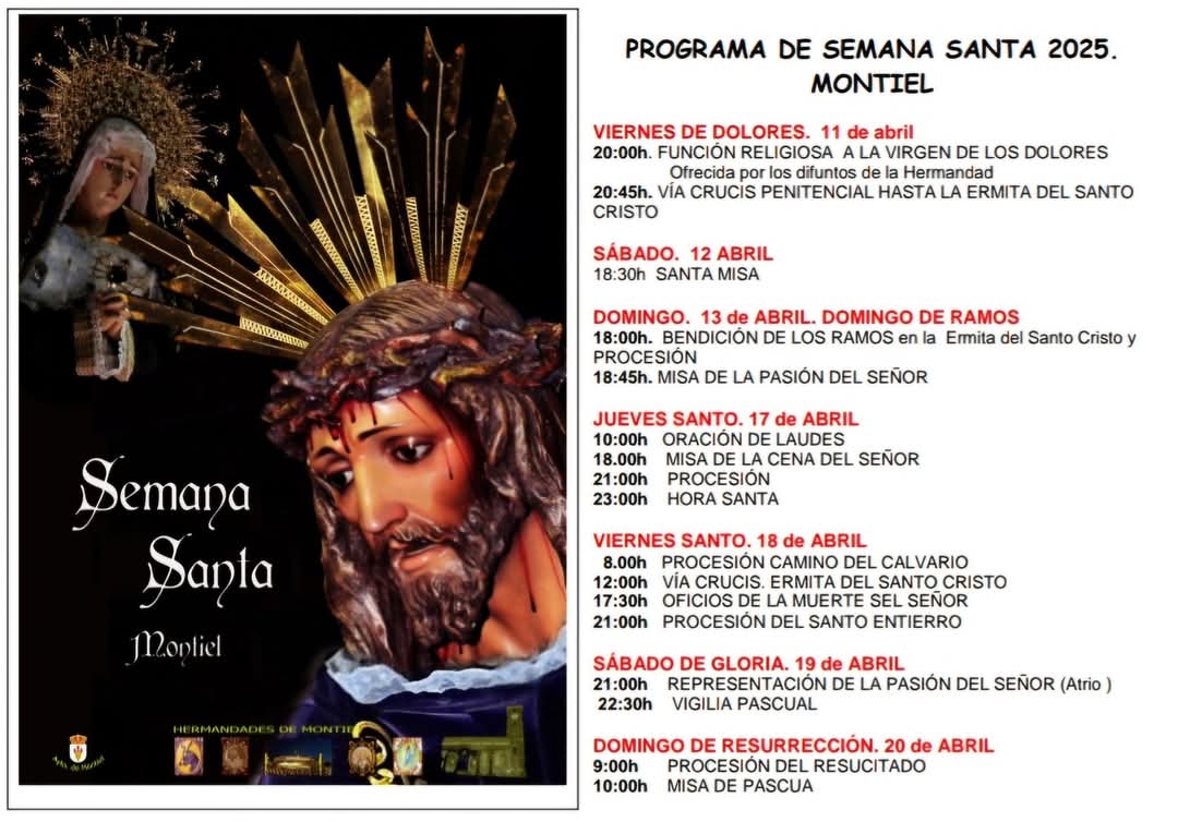 El Ayuntamiento de Montiel (Ciudad Real) y las diferentes Hermandades de la localidad han organizado diferentes actos para la Semana Santa de este 2025.