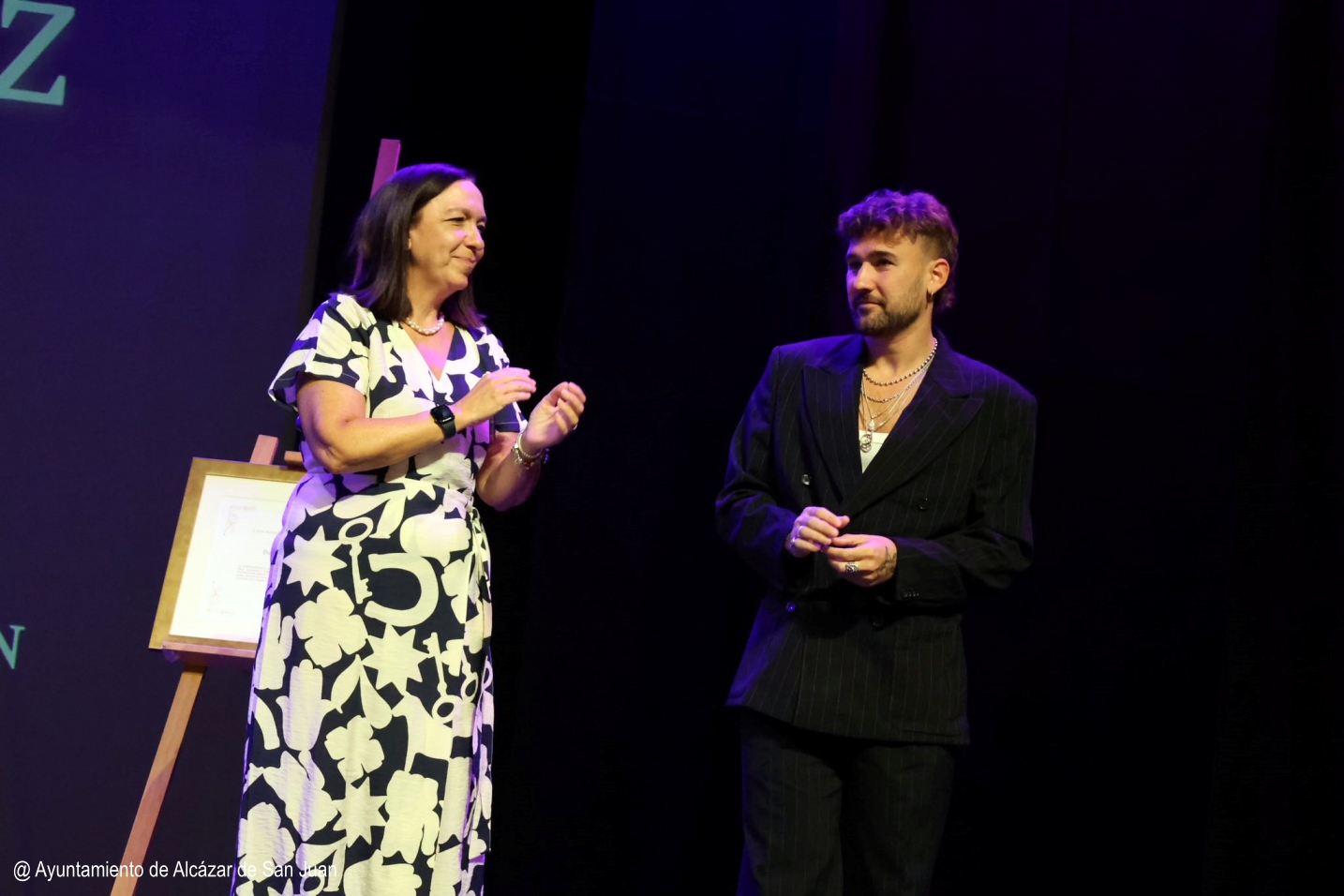 Con un recuerdo muy especial a sus padres, ha añadido: «Si hoy estoy aquí, no hablo solo de lo musical, es porque ellos han luchado para que siempre mantenga mis raíces en Alcázar de San Juan. Ellos me han recordado que la gente de aquí me quiere y me valora».
