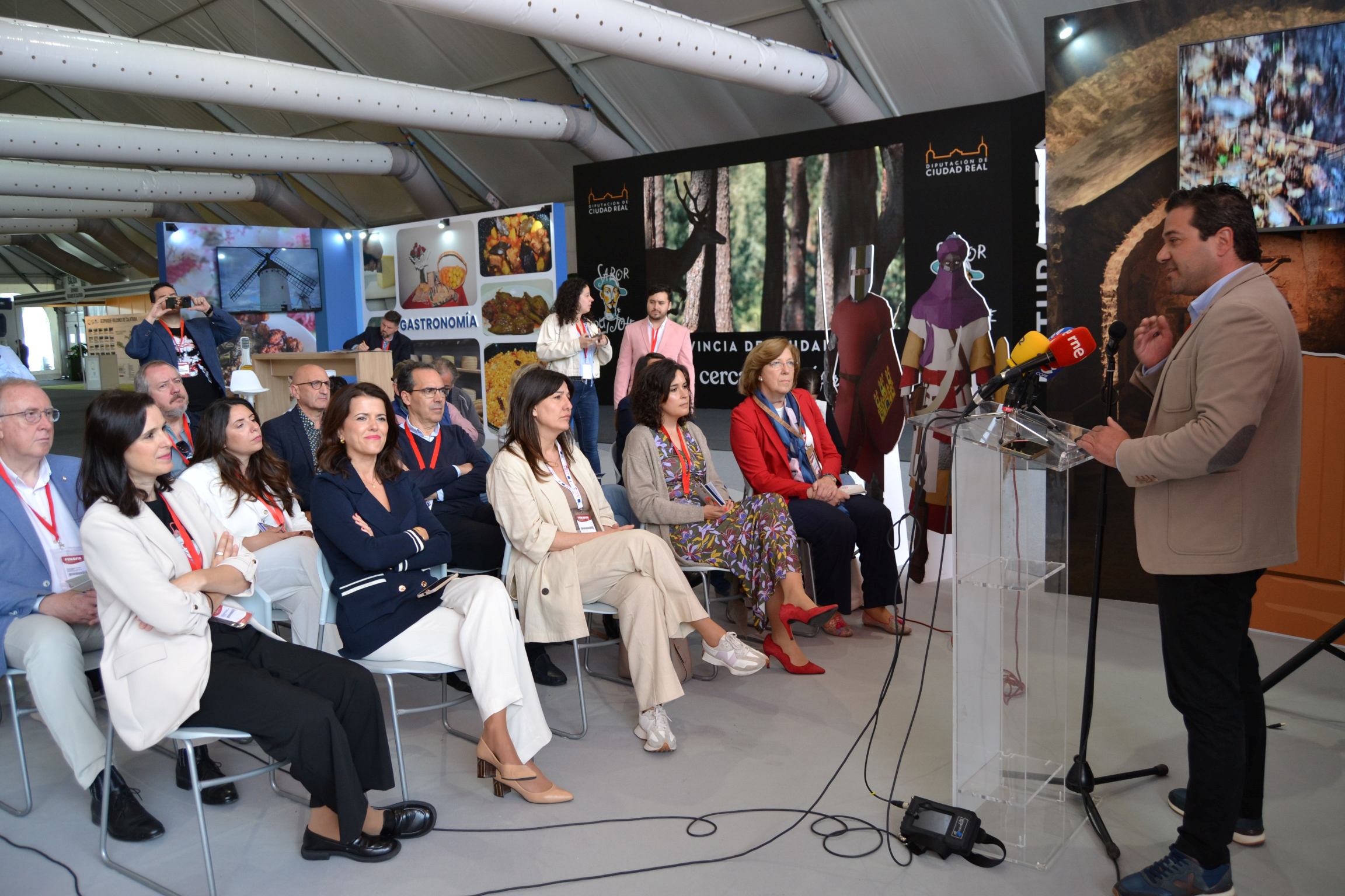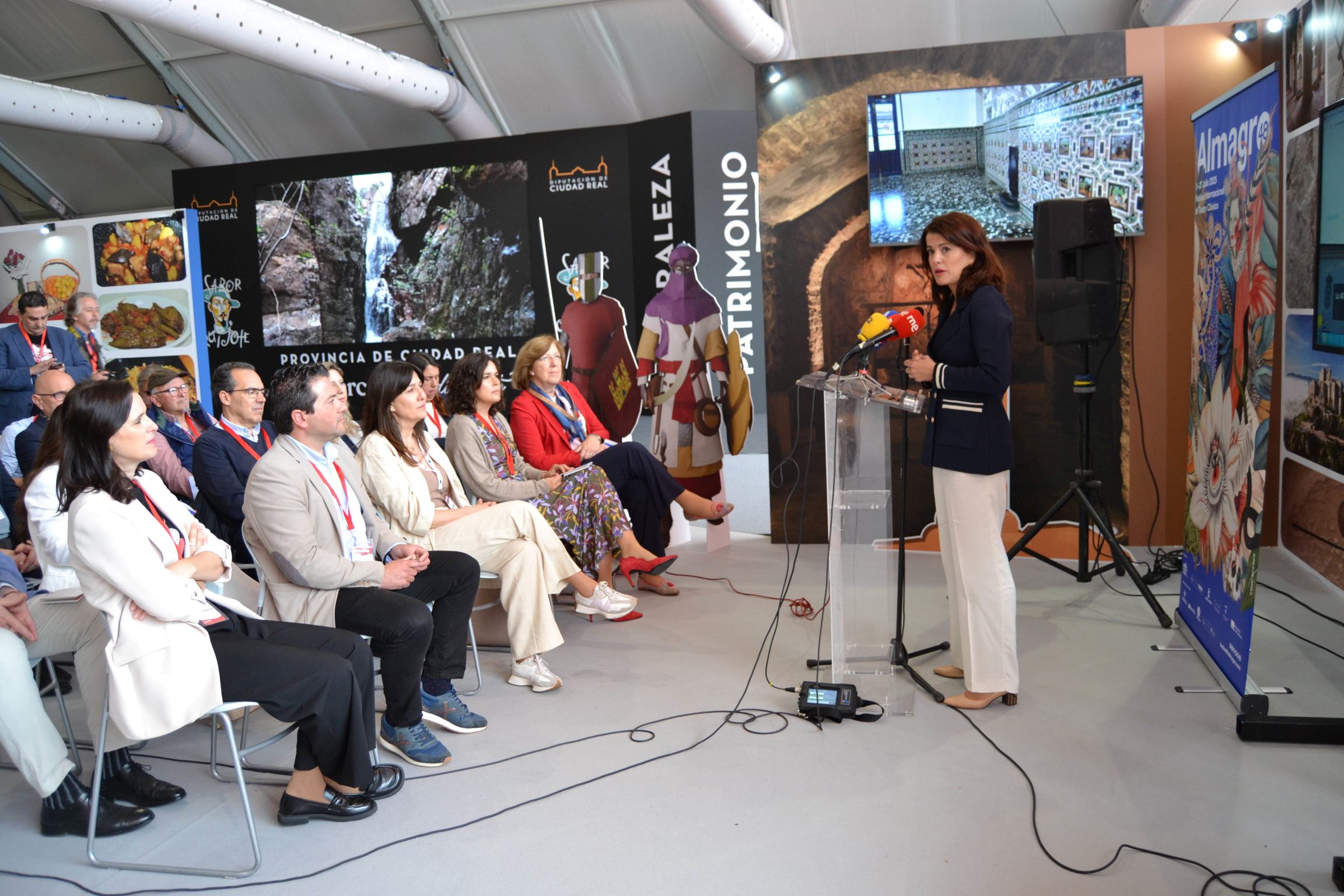 En la presentación en el espacio provincial “Sabor Quijote” de FENAVIN, estuvieron Irene Pardo, directora del Festival Internacional de Teatro Clásico de Almagro; David Triguero, presidente de la AD Campo de Calatrava y alcalde de Pozuelo, con alcaldes y representantes de la Asamblea de la Asociación; la vicepresidenta de la Diputación, María Jesús Pelayo, y la delegada provincial de la Junta de Comunidades, Blanca Fernández.