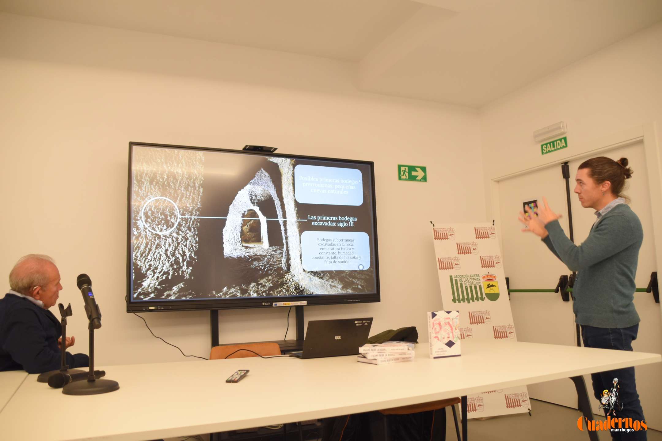 En una segunda parte de su intervención, Bernao se detuvo en los aspectos más técnicos de la excavación de las cuevas, describiendo los procesos de apertura, las fases de trabajo y las soluciones constructivas utilizadas históricamente. Posteriormente, analizó las causas de la desaparición paulatina de este patrimonio subterráneo, aludiendo a los movimientos cívicos y urbanos derivados de la construcción de nuevas viviendas, el aprovechamiento del suelo para edificaciones modernas y la creciente demanda de espacio para garajes y otros usos.