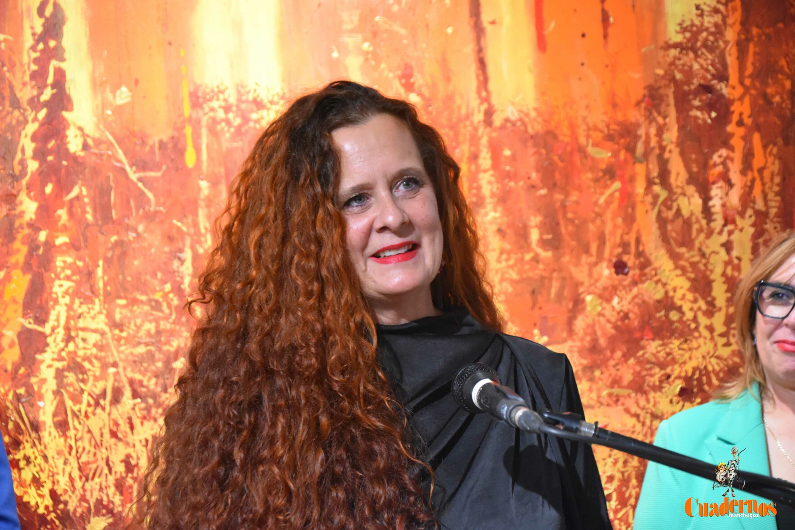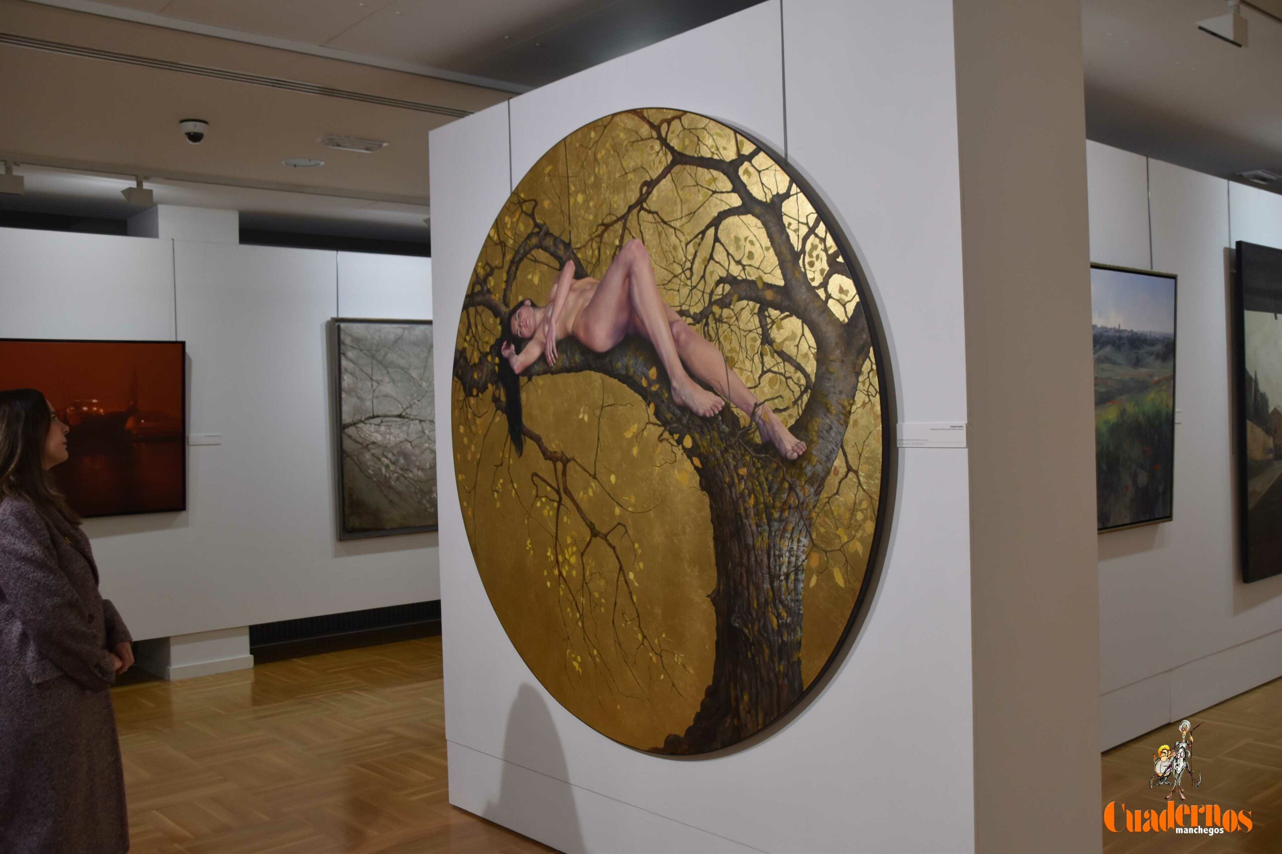 Culubret presentó su obra, La belleza del otoño de la vida, creada expresamente para el certamen, y explicó su planteamiento: equilibrio entre sentimiento, significado y ejecución técnica. Describió el uso de un tondo de gran formato y la figura femenina como elemento narrativo, junto al pan de oro, que —según relató— transforma la percepción del cuadro con la iluminación, dotándolo de una cualidad casi viva. En uno de los pasajes más personales, compartió una anécdota surgida tras la entrega de premios, cuando varias asistentes le transmitieron que se sentían identificadas con lo que la obra sugería, incluso antes de verla en directo.