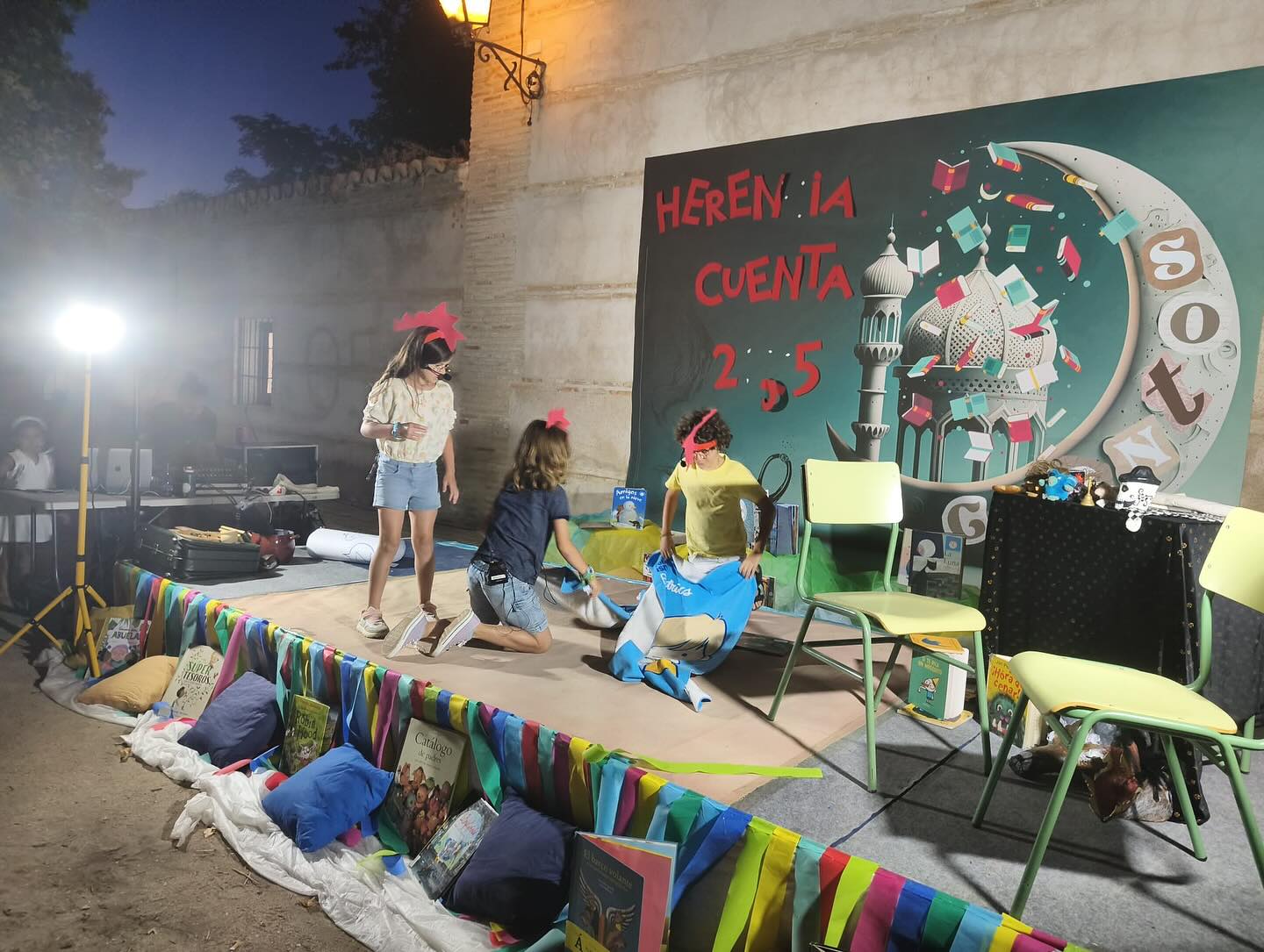 Los narradores Primigenius hicieron las delicias del numeroso público asistente. Con una mezcla de música tradicional y álbumes ilustrados hicieron cantar, contar y disfrutar al público presente de una noche mágica de cuentos.