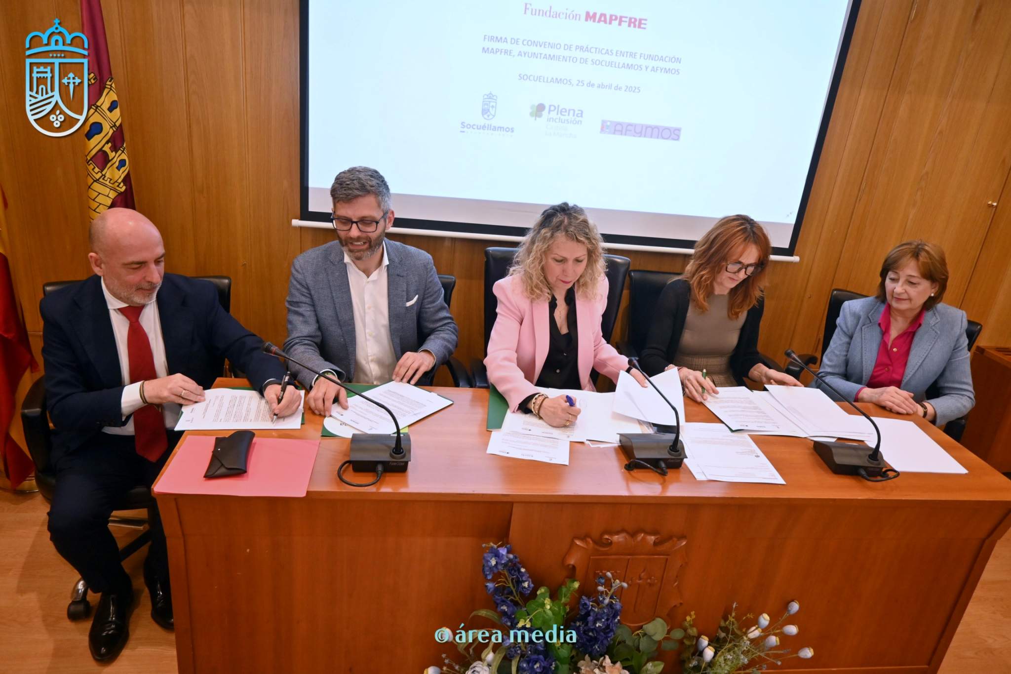 Fundación MAPFRE, el Ayuntamiento de Socuéllamos, AFYMOS y Plena inclusión Castilla-La Mancha han firmado hoy un convenio de prácticas en el consistorio de dicha localidad.