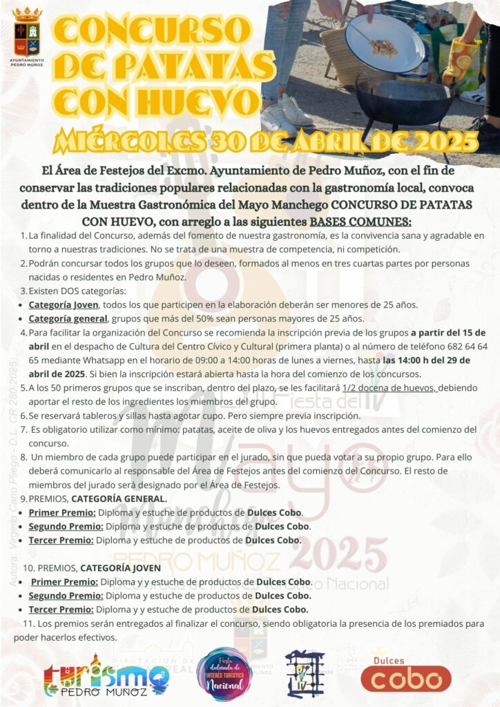 Como muy bien manda la tradición de los mayos de Pedro Muñoz ya se está empezando a preparar en la localidad la sartén, por ello, desde el Área de Festejos del Ayuntamiento ciudadrealeño han convocado nuevamente los concursos de gachas, patatas con juevo y pistos, que tendrán lugar el 27, 30 de abril y 3 de mayo respectivamente.