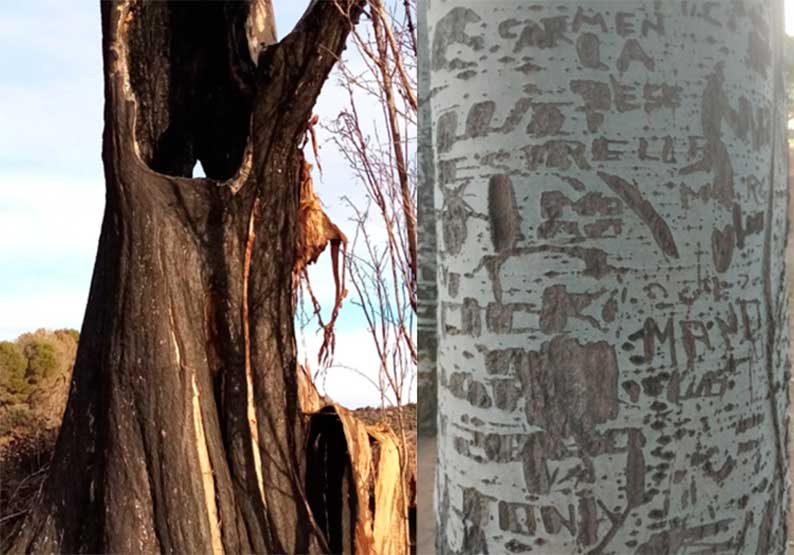Cuando los ocho o nueve chiquillos de la, entonces, aldea de Ruidera, éramos rapiñadores de lo que la naturaleza le “brindaba” (?) a la comunidad, nos la jugábamos “mangando” nueces de la veintena de nogales del recinto de los antiguos Molinos de la Pólvora. Éramos así, porque no había más remedio… Cuando los guardas nos acechaban y perseguían, nos escondíamos en los cárcavos de los molinos, que se hundían y ahondaban en las arenas cenagosas del río y detrás (?) del enorme “Olmo de las portadas de Carros”, de los derrumbados Molinos o “Fábrica de la Pólvora”, y detrás (?) del reverenciado “Chopo de Santa Bárbara”, ya en declive, junto al descabezado arco carpanel, de sillería; donde proliferaban hongos basidiomicetos comestibles. ¿Escondernos detrás de los árboles? Como los pibes aún no raciocinábamos lo de ubicación y estereografía, el “Hermano Rafael” y el “Hermano Amancio”, que eran los caseros y guardas, cambiaban de enclavamiento…; nos echaban el guante y nos “confiscaban” los frutos recolectados… Pero entonces, algunos de los críos, aprendimos que los árboles no tienen “detrás” ni “delante”; ni “izquierda” ni “derecha”.