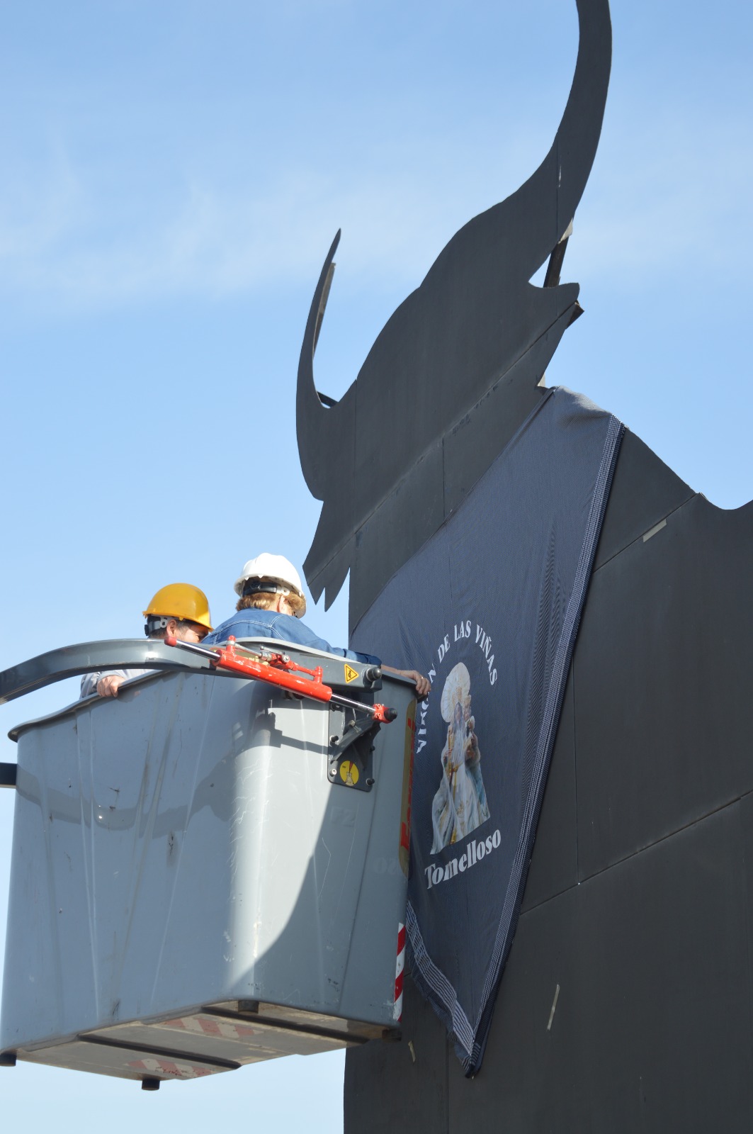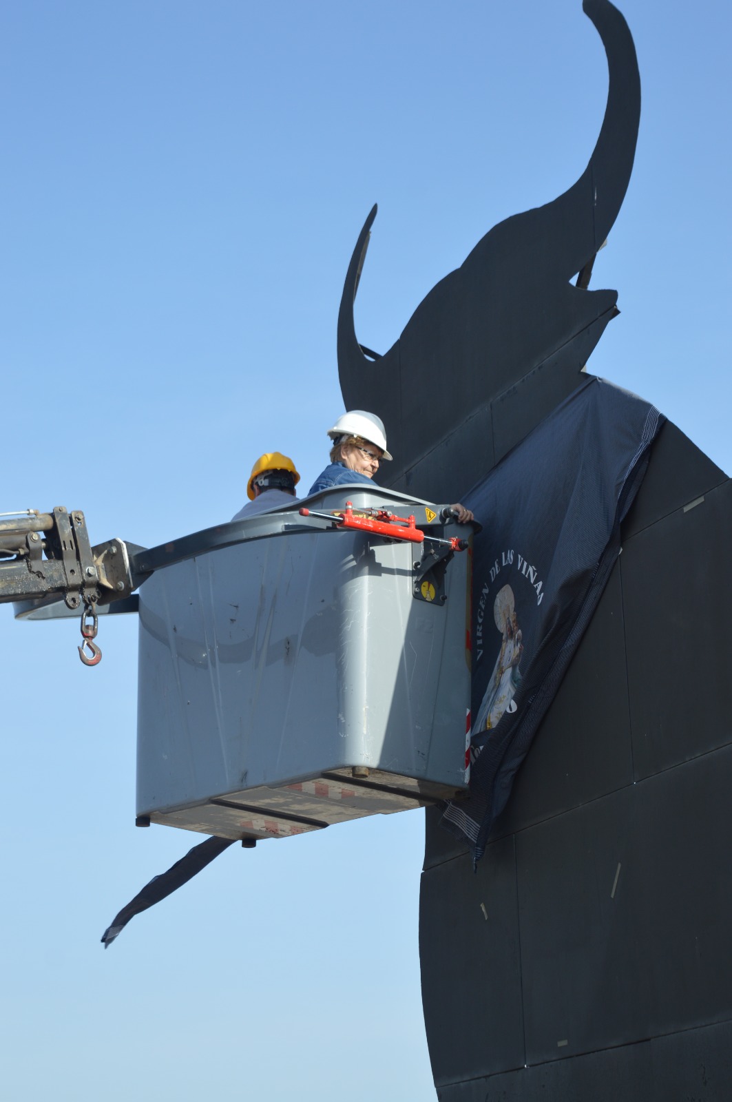 La protagonista de este gesto ha sido Isabel Cañas, de la Hermandad de la Virgen de las Viñas, quien ha participado en la colocación del tradicional pañuelo sobre el monumento, convertido ya en un punto simbólico dentro del paisaje local.