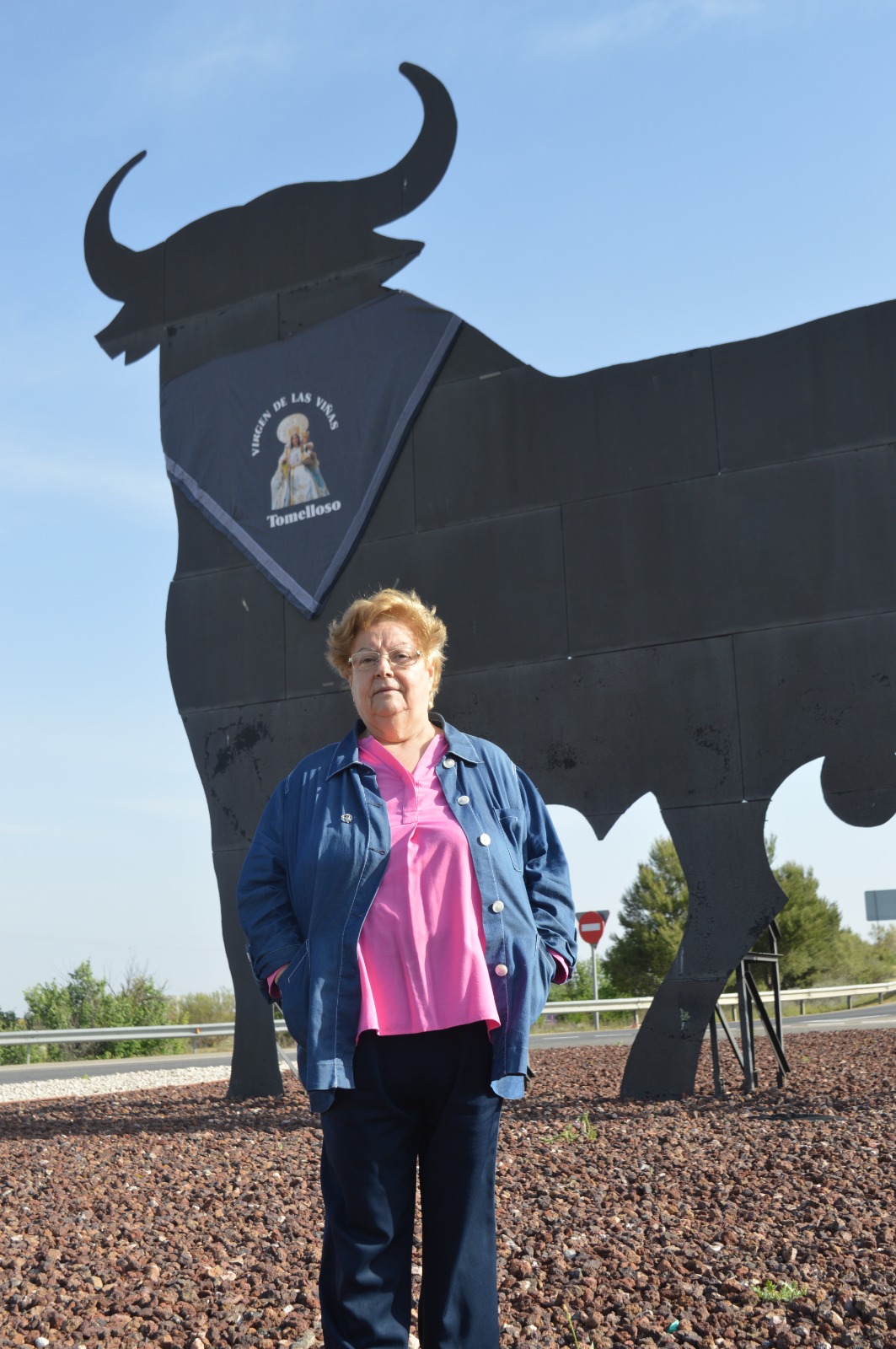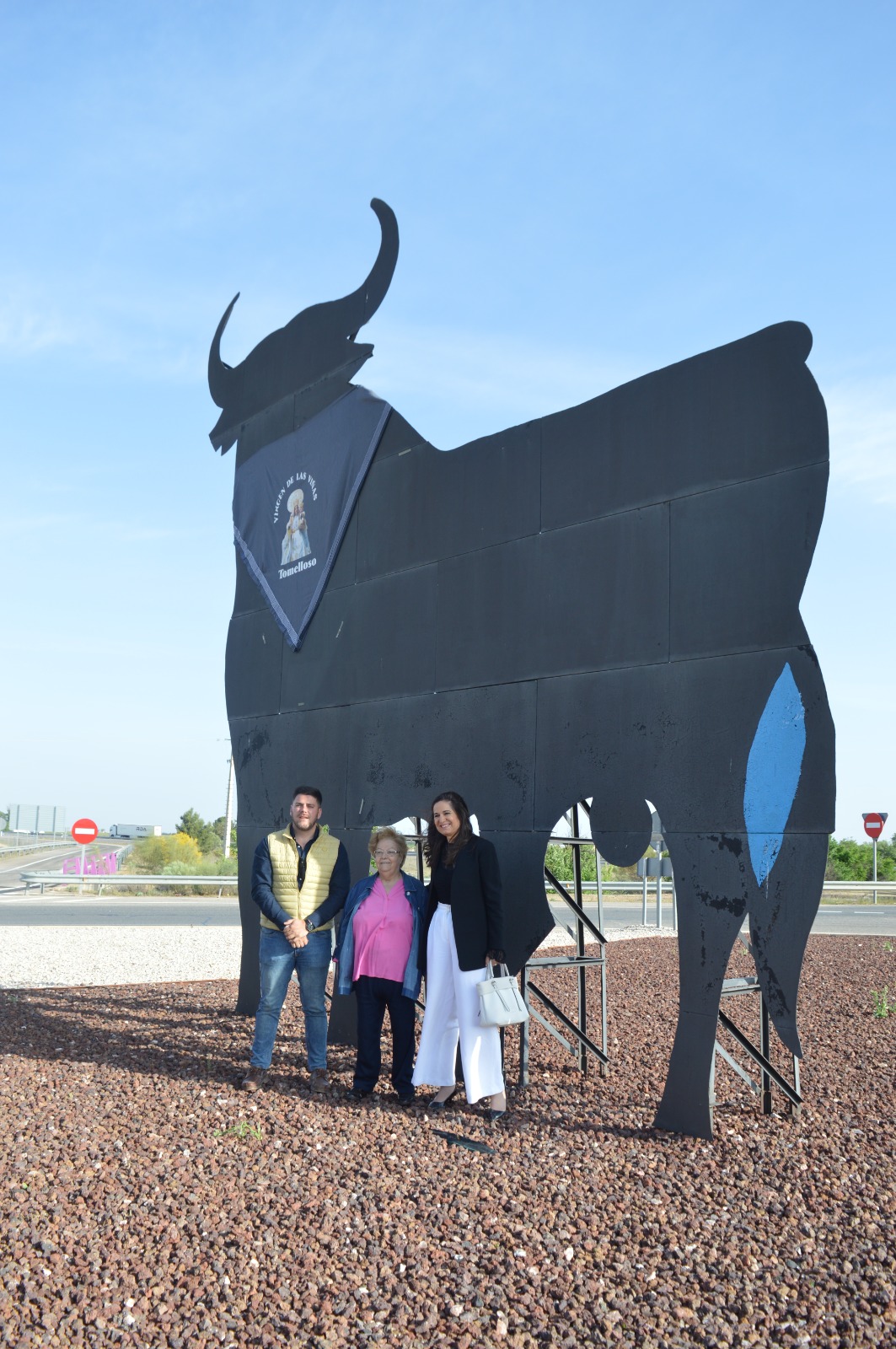Este emplazamiento no es casual. El monumento se encuentra en una zona muy vinculada al camino de la romería y a la devoción por la Virgen de las Viñas, patrona de Tomelloso. Por eso, cada año, la colocación del pañuelo adquiere un valor especial: no solo viste al toro, también anuncia una tradición muy sentida por vecinos, romeros y visitantes.