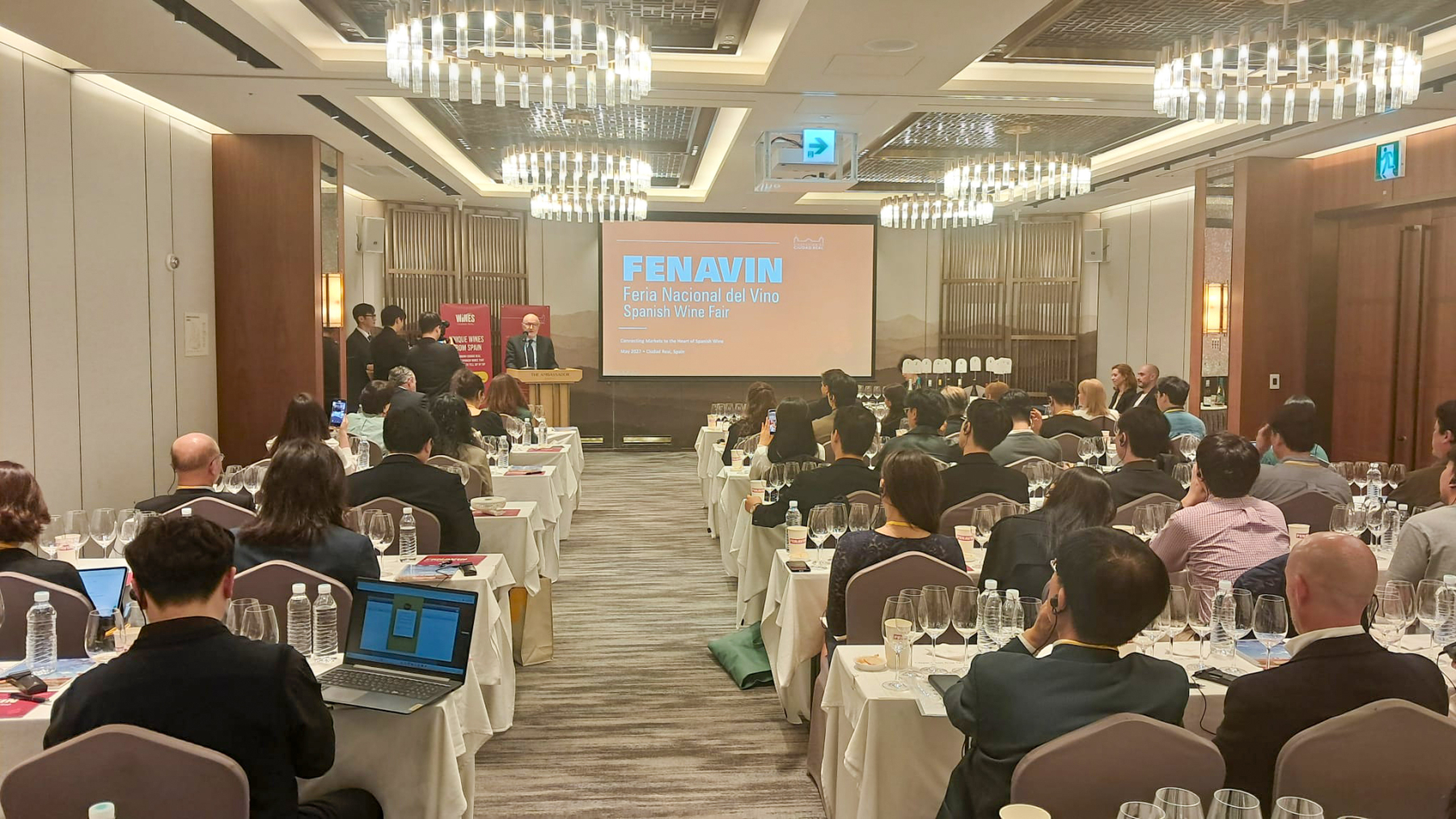 Durante la jornada de trabajo celebrada en Seúl, la delegación institucional ha sido recibida por la consejera económica y comercial de la Embajada de España en Corea del Sur, Renata Sánchez de Lollano, y posteriormente por el embajador de España, Julio Herráiz. Ambos han asistido con posterioridad a la presentación oficial de la Feria Nacional del Vino (FENAVIN) ante medios de comunicación especialiazados y compradores y distribuidores surcoreanos.