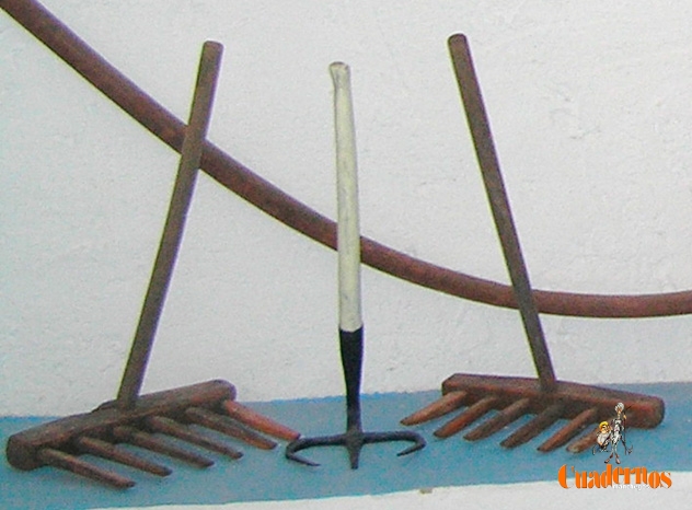 La descarga desde el carro, incluso desde los remolques, se realizaba utilizando los llamados “rastros”, que eran una especie de palas en cuyo extremo se encontraban puntas de hierro o de madera lineales, existiendo de varios modelos: de tres, cuatro y de seis ganchos y otros de ganchos embolados