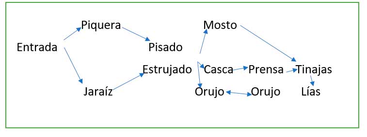 Comenzamos este artículo dando a conocer un esquema básico de la elaboración de vino en nuestras cuevas familiares en distintas épocas y que queda reflejado de la siguiente forma: