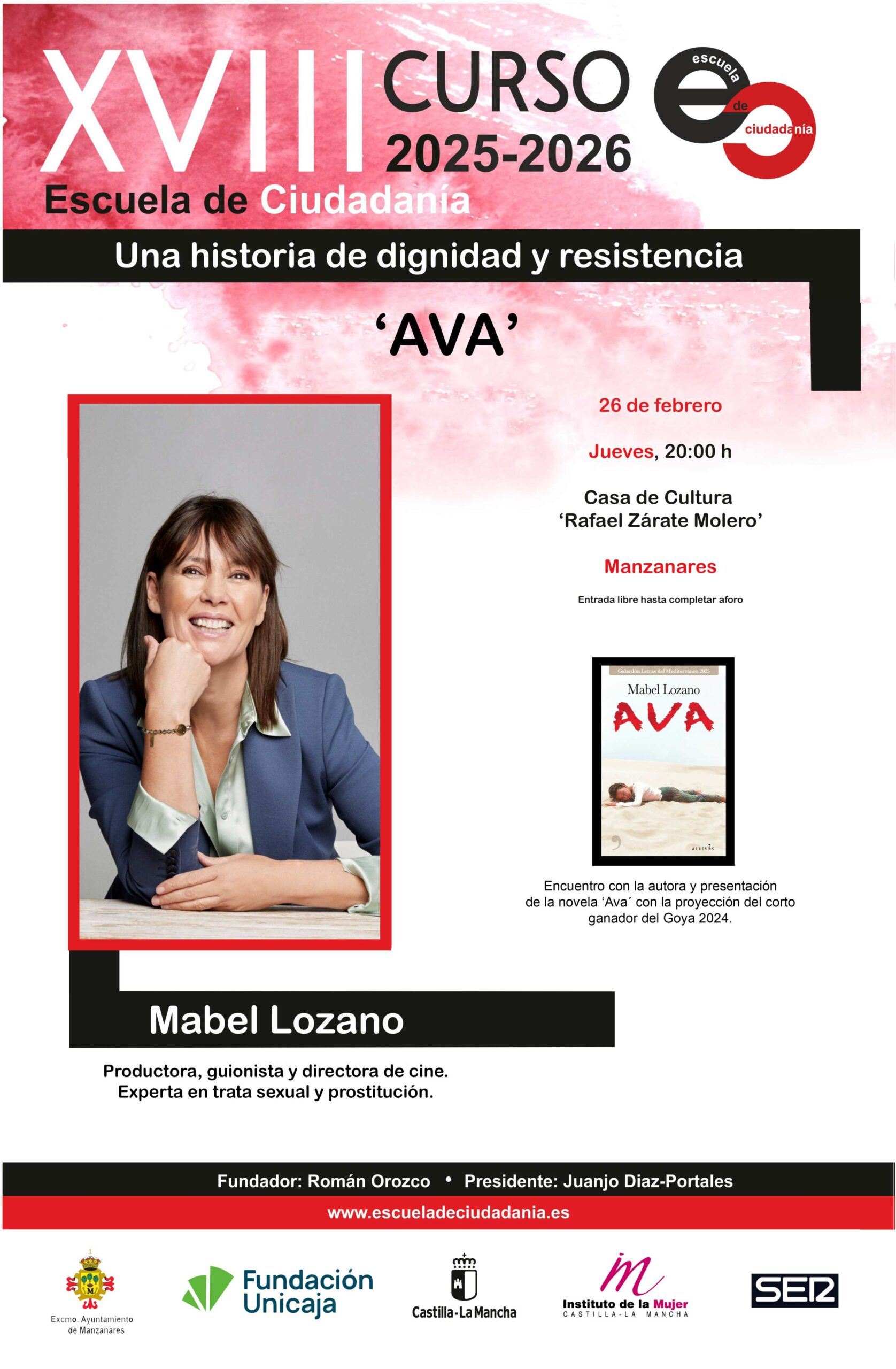 La Escuela de Ciudadanía retoma las conferencias de su XVIII Curso el próximo jueves, 26 de febrero, con un encuentro con la guionista, productora y directora de cine Mabel Lozano. A partir de las 20:00 horas presentará ‘Ava’, su primera novela de ficción, una historia sobre el mundo de la prostitución. En el acto se proyectará también el cortometraje del mismo título, con el que la cineasta toledana ganó en 2024 el Goya al mejor corto documental.