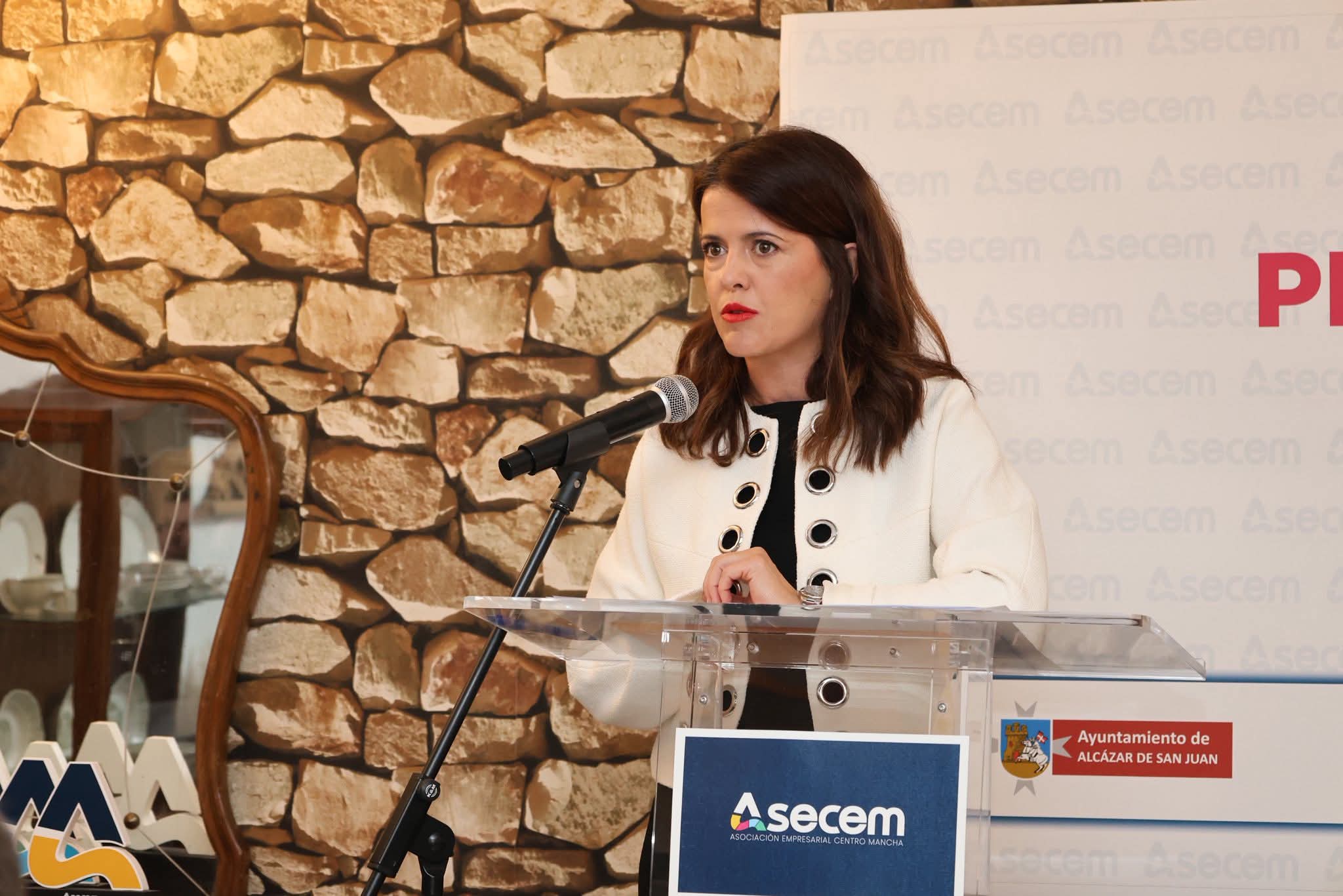 La vicepresidenta primera de la Diputación de Ciudad Real, María Jesús Pelayo, ha asistido este sábado en Alcázar de San Juan a la VI Gala Empresarial y entrega de premios organizada por ASECEM (Asociación Empresarial Centro Mancha), un acto en el que ha destacado “el papel fundamental que desempeñan nuestros autónomos, pymes y empresarios como auténtica columna vertebral de la economía de nuestros pueblos”.