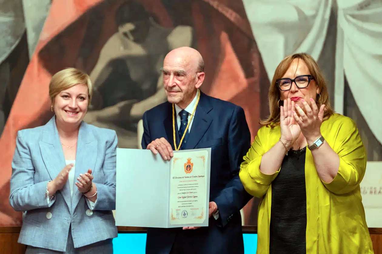 El encargado de su Laudatio, el profesor de Historia de la UCLM y expresidente de la Junta de Comunidades, José María Barreda, destacaba cómo Torres Ugena ha sabido maridar la cultura del campo y la del espíritu y, en la Atenas de La Mancha, con una nómina impresionante de grandes escritores y pintores, alzar un faro para los creadores como es el Certamen Virgen de las Viñas y un potente Museo de Arte Contemporáneo como el Infanta Elena.