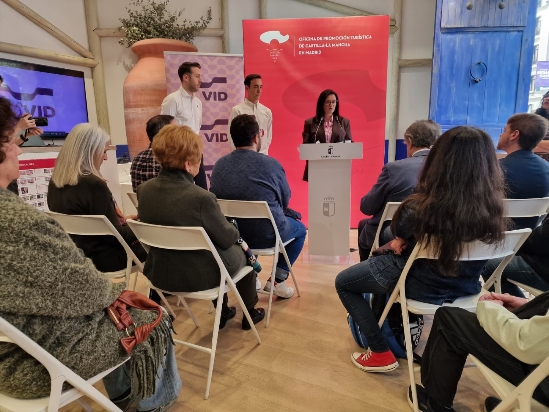 La portavoz del Gobierno de la Diputación de Ciudad Real, Rocío Zarco, participó ayer por la mañana en la presentación del Festival El Vid en la Oficina de Castilla-La Mancha en Madrid, un evento que se celebrará los días 5 y 6 de junio en Daimiel.