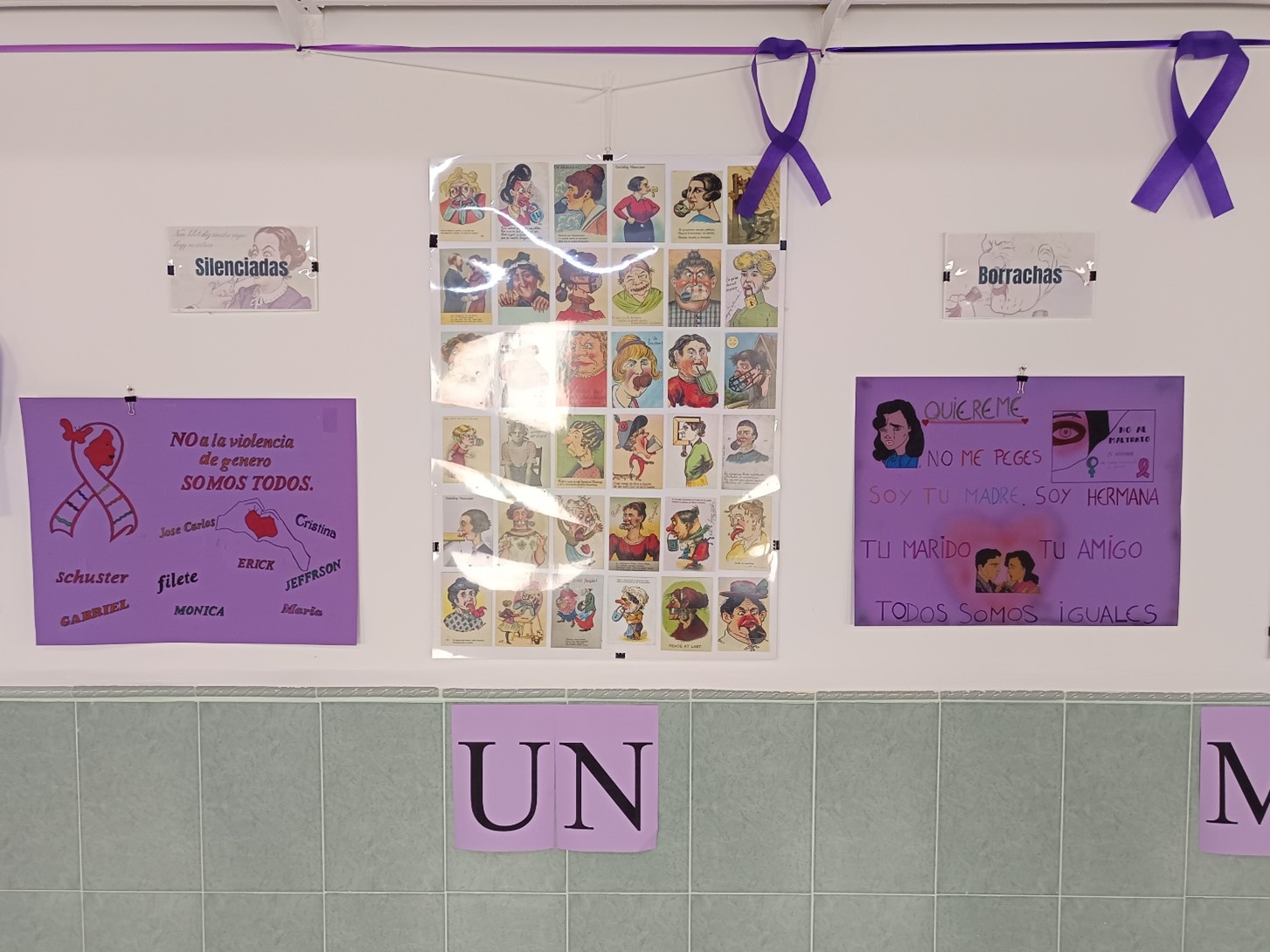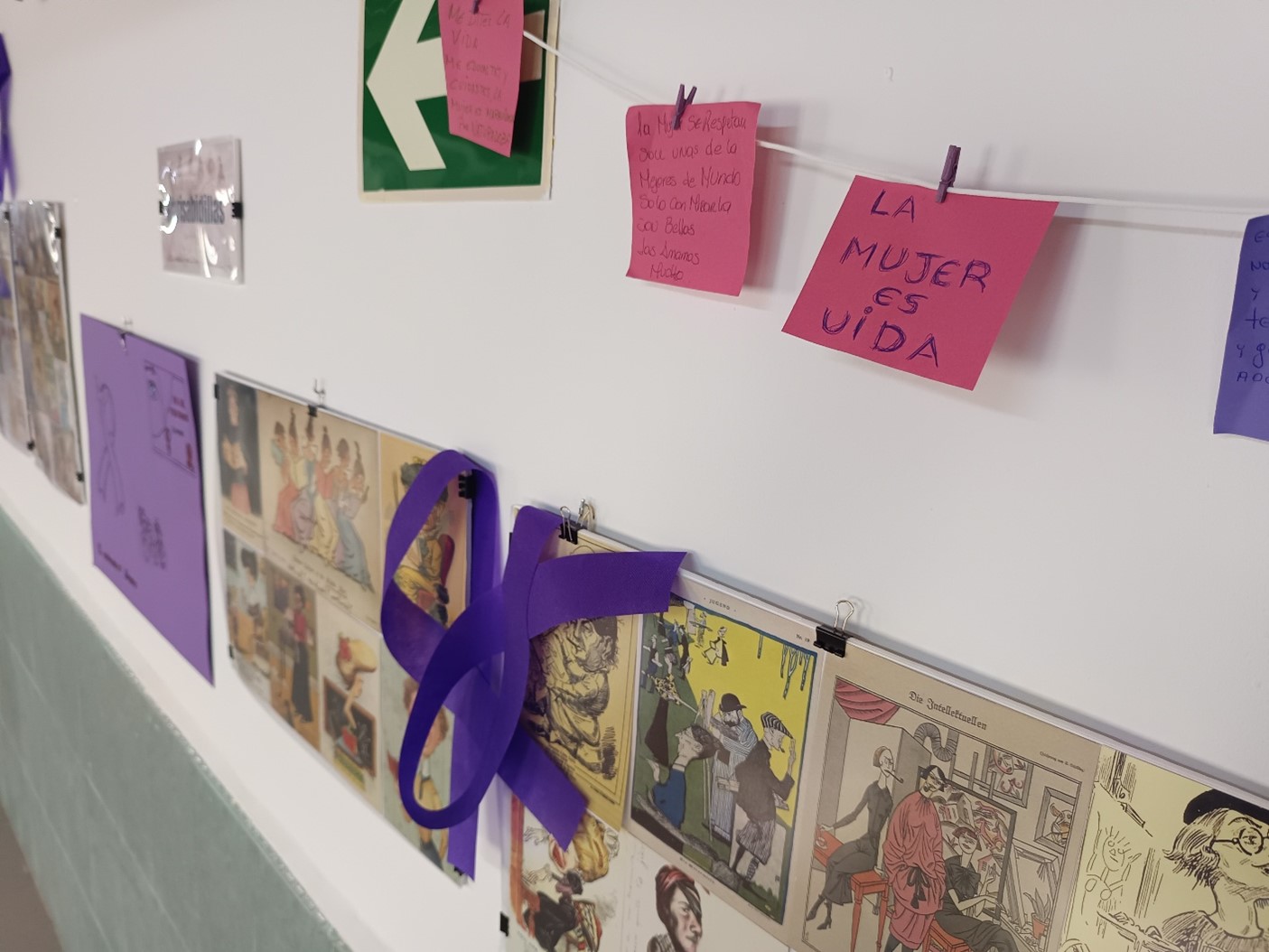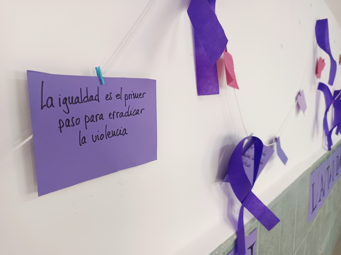 El programa que se ha llevado a cabo a lo largo de toda esta semana ha contado con la colaboración de la Subdelegación del Gobierno que, a través de la UNVIMU, participó en la elaboración de carteles y en la distribución de pulseras conmemorativas entre los internos asistentes. Además, un grupo de internos de distintos departamentos participó activamente en la colocación de lazos morados y cartulinas con mensajes de sensibilización por todo el centro.