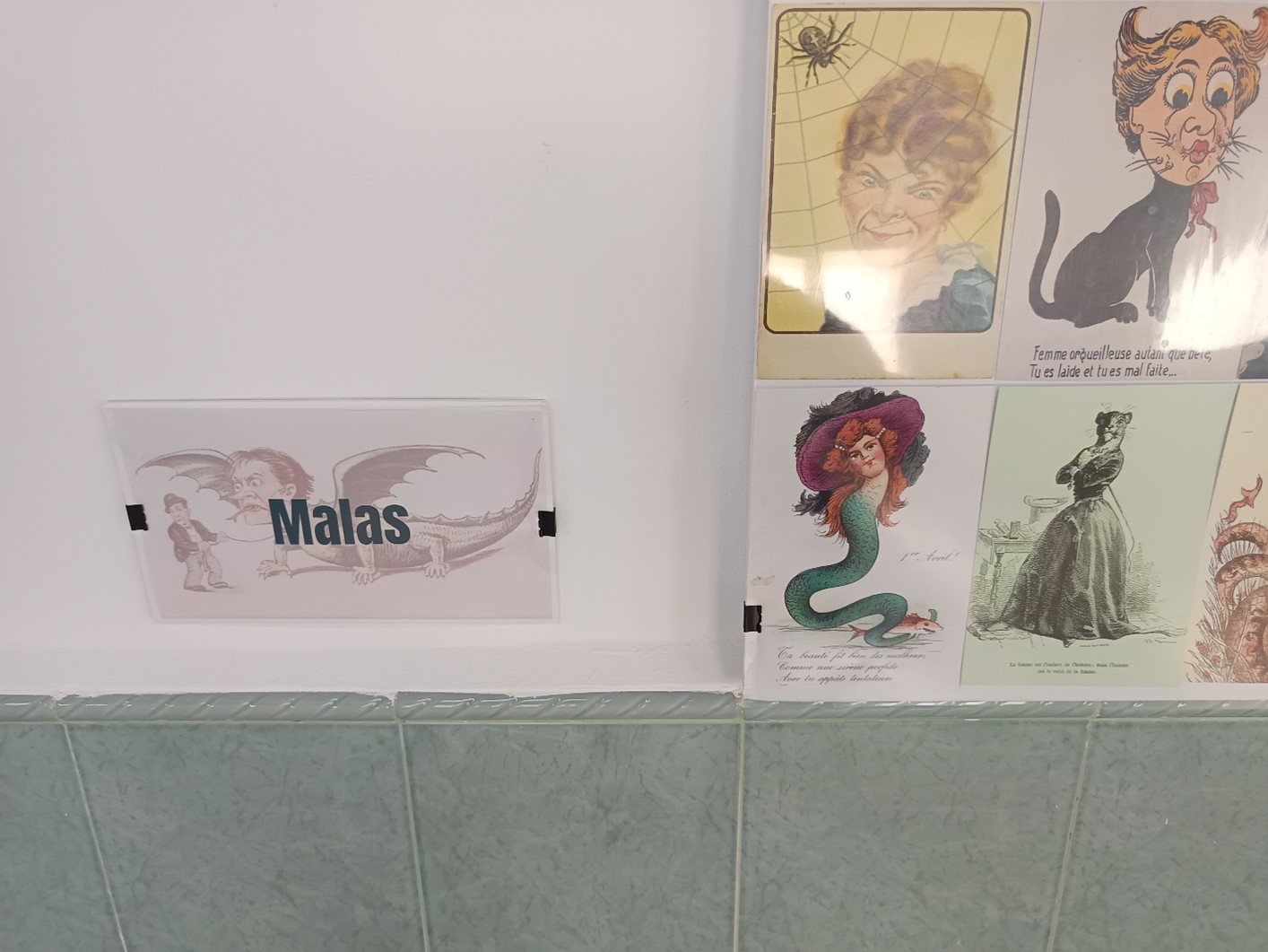La muestra reunió diversas caricaturas históricas que ridiculizaban a las mujeres mediante insultos y estereotipos como “solterona” o “desnaturalizada”, invitando a reflexionar sobre cómo el humor ha sido utilizado para perpetuar desigualdades.