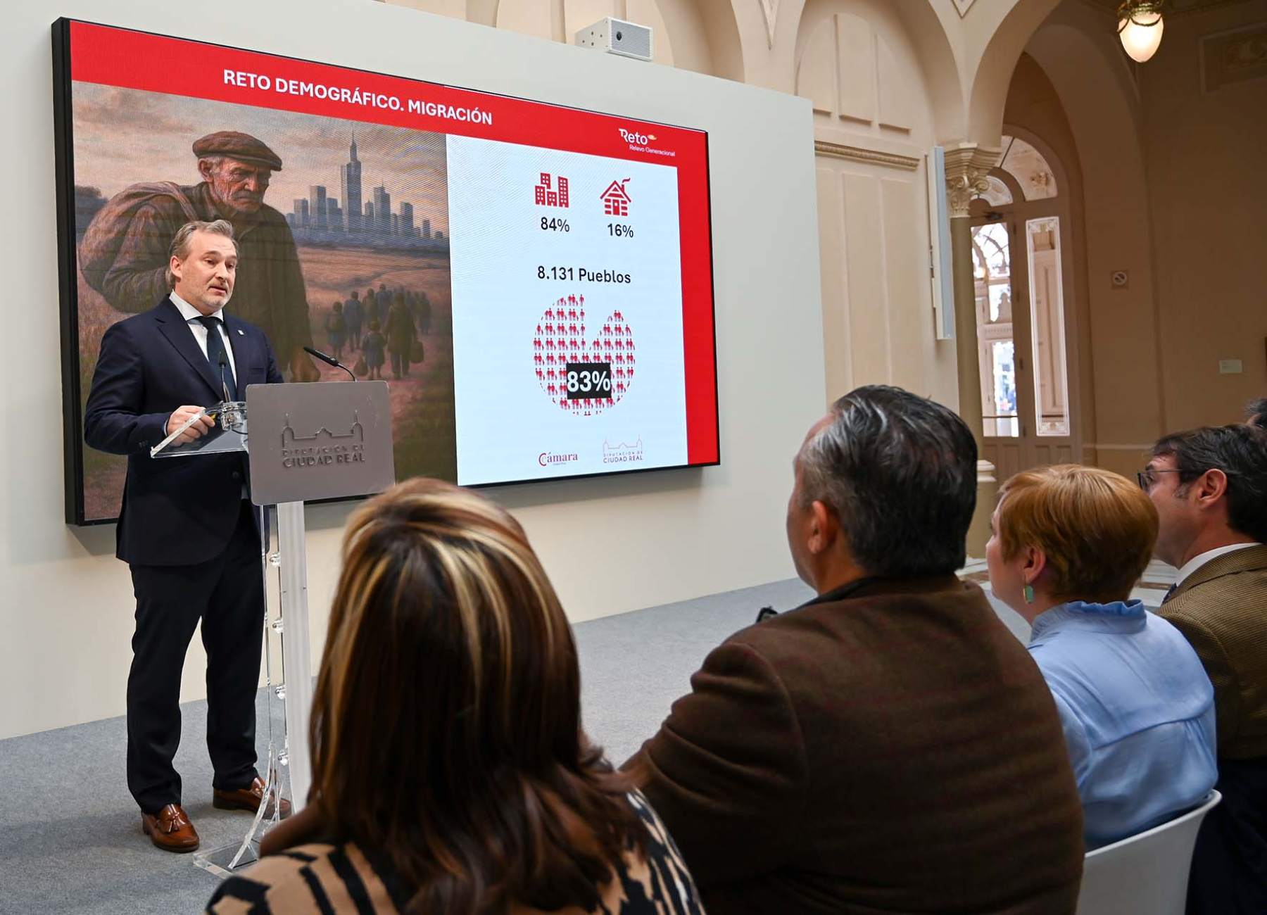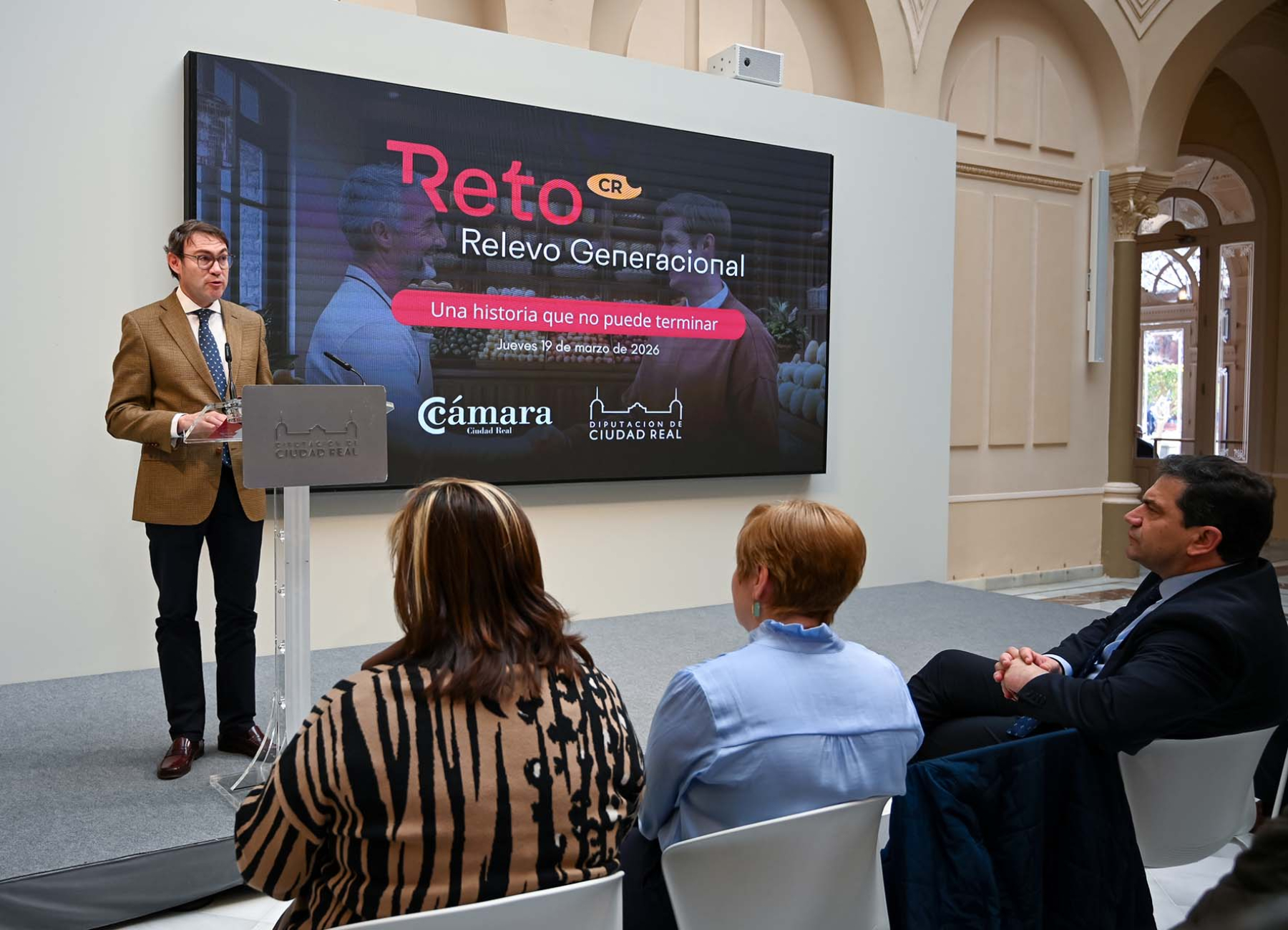 El presidente de la Diputación de Ciudad Real, Miguel Ángel Valverde, ha presentado hoy junto al presidente de la Cámara de Comercio, José Luis Ruiz, el balance del programa “Reto Relevo Generacional”, una iniciativa financiada por la institución provincial con 200.000 euros que desarrolla la entidad cameral para favorecer la continuidad de negocios y empresas en los pueblos de la provincia, combatir la despoblación y generar nuevas oportunidades de emprendimiento en el medio rural. Durante el acto, se han dado a conocer los primeros resultados de implantación del proyecto, que ya ha permitido 16 continuidades empresariales, ha identificado 61 negocios en situación de relevo, cuenta con más de 500 emprendedores registrados y mantiene 7 procesos de relevo en marcha.