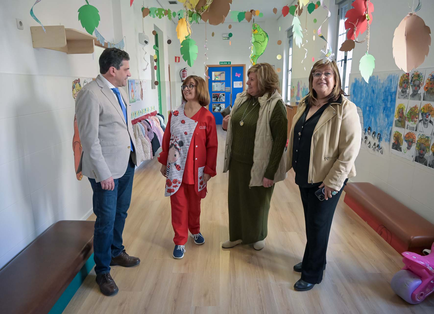 Acompañado por la directora del centro, Gloria Miguélez, por la vicepresidenta Encarnación Medina y la diputada provincial María Antonia Álvaro, Valverde ha recorrido las siete aulas de la escuela infantil, dos de bebés, dos para menores de uno a dos años y tres de dos a tres años. Ha saludado al equipo educativo, se ha interesado por las características del trabajo que desempeñan y ha charlado con los pequeños.