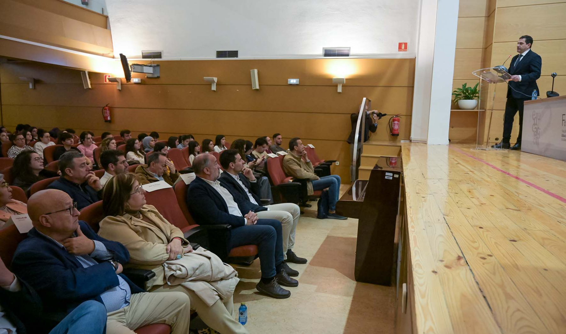 Antes del acto de presentación, el vicedirector de Prácticas de la Facultad de Educación, Manuel Javier Cejudo, ha acompañado al presidente de la Diputación y al resto de autoridades en un recorrido por uno de los pasillos del centro, donde se ha montado una exposición fotográfica con imágenes de ediciones anteriores del programa.