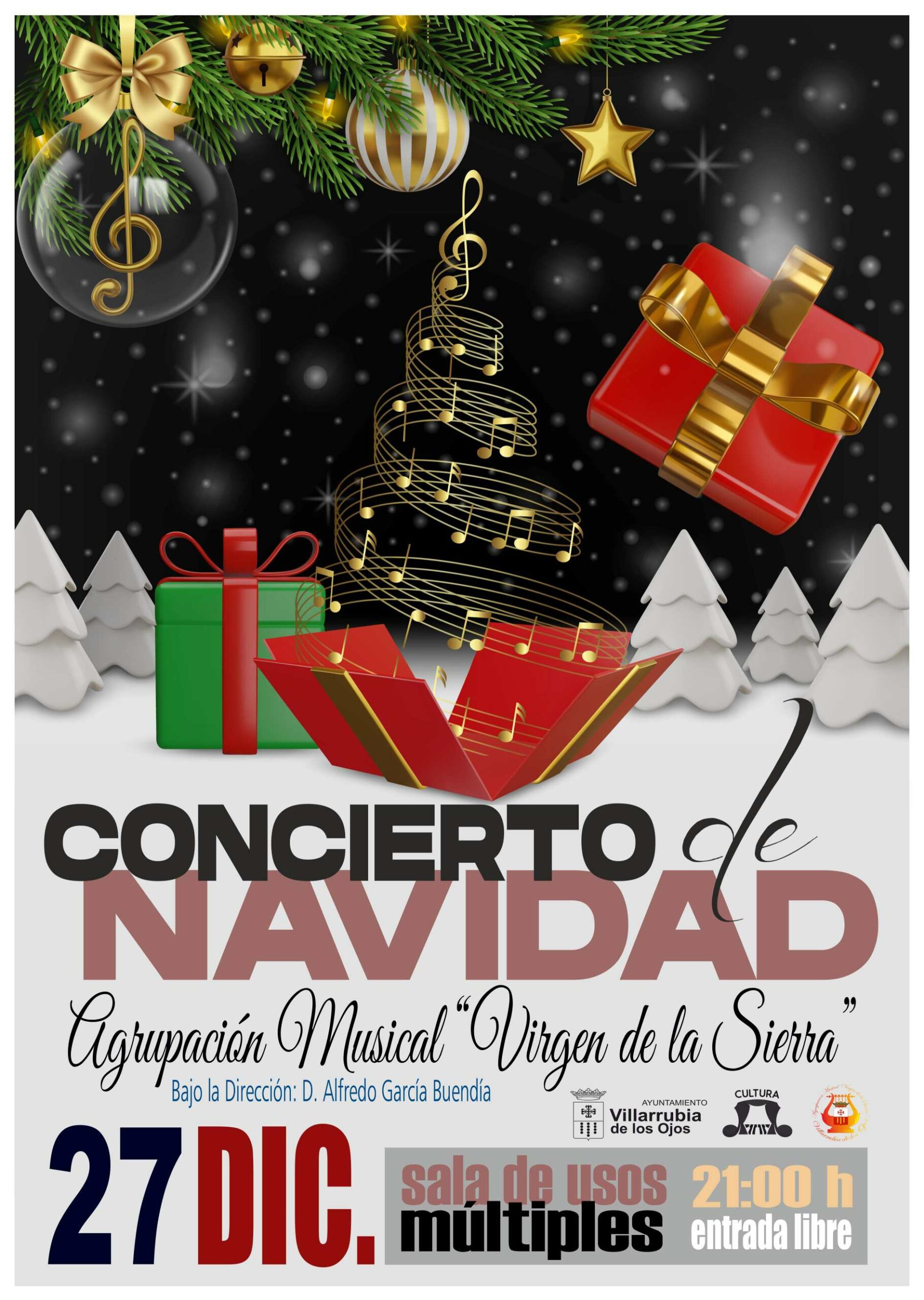 El Concierto de Navidad será el 27 de diciembre a las 21 horas en la Sala de Usos Múltiples, donde la Agrupación Musical Virgen de la Sierra, bajo la dirección de Alfredo García Buendía, ofrecerá el Concierto de Navidad, interpretando piezas tradicionales de esta época del año. Como novedad este año contaremos con la colaboración de los alumnos/as de lenguaje musical de la Escuela Municipal de Música “Servando Serrano” y los alumnos/as de la asignatura de música de los tres centros de primaria de la localidad. La entrada será libre hasta completar aforo.