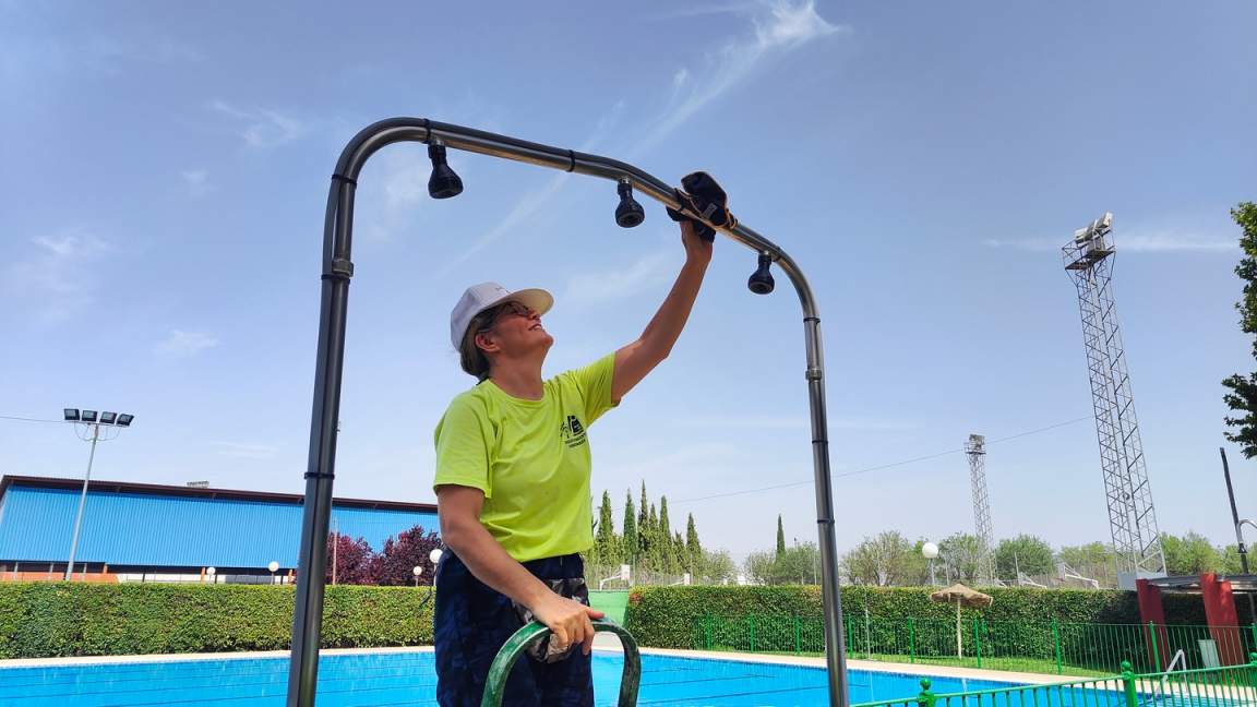 La actividad es intensa estos días en la piscina de verano, ubicada en el polideportivo municipal. El personal del área de Deportes ultima los detalles para que todo esté a punto para que el viernes 13 de junio a las 12 horas la instalación pueda abrir sus puertas, iniciándose así la temporada de verano en Manzanares.