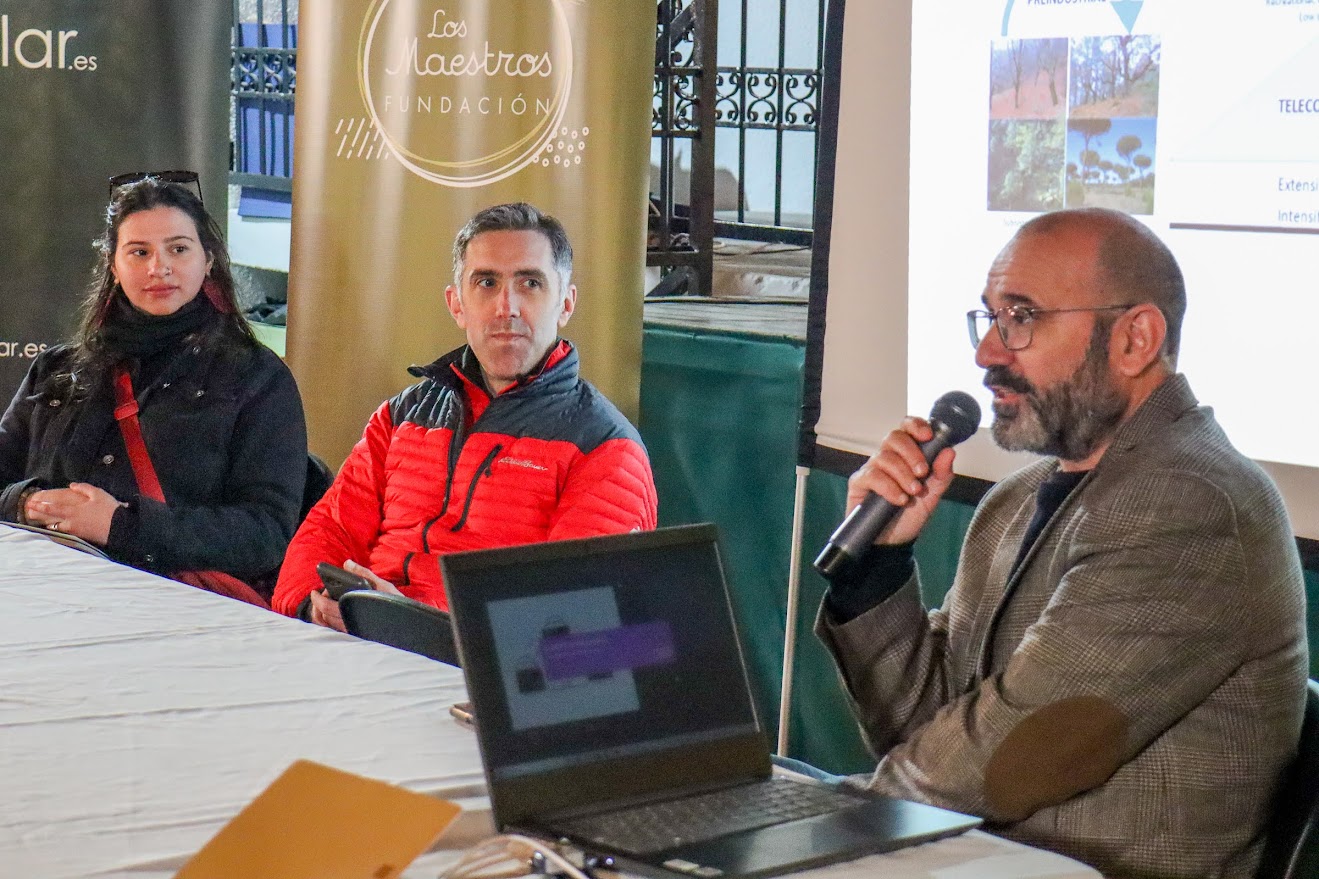 Una vez en Vega del Codorno, Rodrigo Molina, alcalde de la localidad, acompañado por José Miguel Rodríguez, presidente de la Fundación Los Maestros y Carmen Vázquez dieron la bienvenida a los estudiantes participantes en esta jornada, antes de dar paso a Patricia Olivares, de Fundación Global Nature, que presentó el proyecto «Naturaleza Pastorear», cuyo objetivo es resaltar la importancia del pastoreo, no solo como una tradición, sino también como una herramienta clave para la conservación ambiental. Actualmente están trabajando en diversos proyectos vinculados a la recuperación de razas autóctonas de ganado, como la blanca cacereña y la medina negro o buscar fórmulas para revitalizar el pastoreo en paisajes rurales, especialmente en áreas naturales protegidas como las Zonas Red Natura. Además, pretende comercializar productos de calidad derivados del pastoreo, como carne, leche y lana, con el fin de apoyar la biodiversidad y combatir el cambio climático. También presentó los trabajos de la fundación en la educación ambiental, sensibilizando a niños y adultos sobre los beneficios del pastoreo para los ecosistemas.