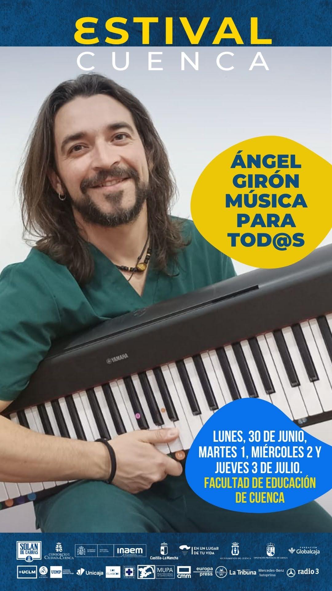 DIVERSIDAD FUNCIONAL Y CÁNCER. En primer lugar y como se ha mencionado, Ángel Girón dirigirá los ocho talleres de musicoterapia para personas con diversidad funcional y cáncer. Tendrán lugar en horario de mañana el lunes 30 de junio, martes 1, miércoles 2 y jueves 3 de julio de 2025 en el aula de música Facultad de Educación de Cuenca (UCLM). El trompetista y docente sanclementino es también musicoterapeuta especialista en el ámbito de la diversidad funcional, atención temprana, embarazo y primera Infancia. Del mismo modo, es creador del programa de Educación Musical Inclusiva “DiversSound”.