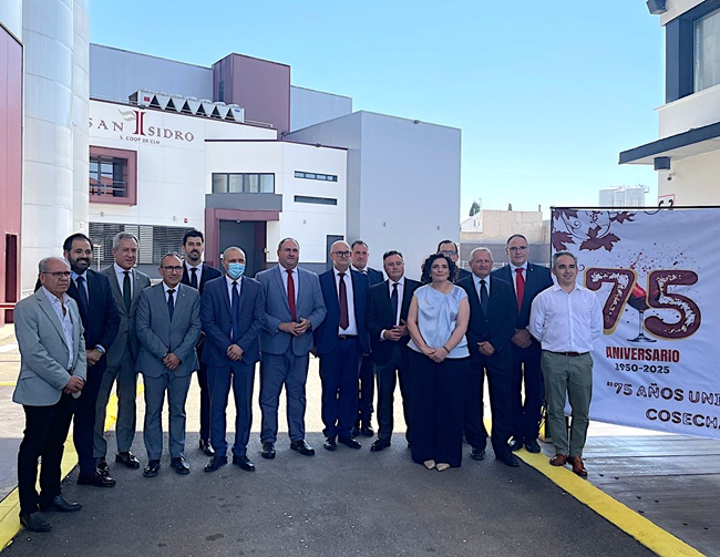 El presidente de la entidad financiera, Javier López Martín, trasladó a los miembros de la Junta Rectora de la cooperativa, encabezados por su presidente, Julián Onate Marcilla, su felicitación por esta efeméride y por la trayectoria de una de las empresas vitivinícolas más emblemáticas de nuestra región.