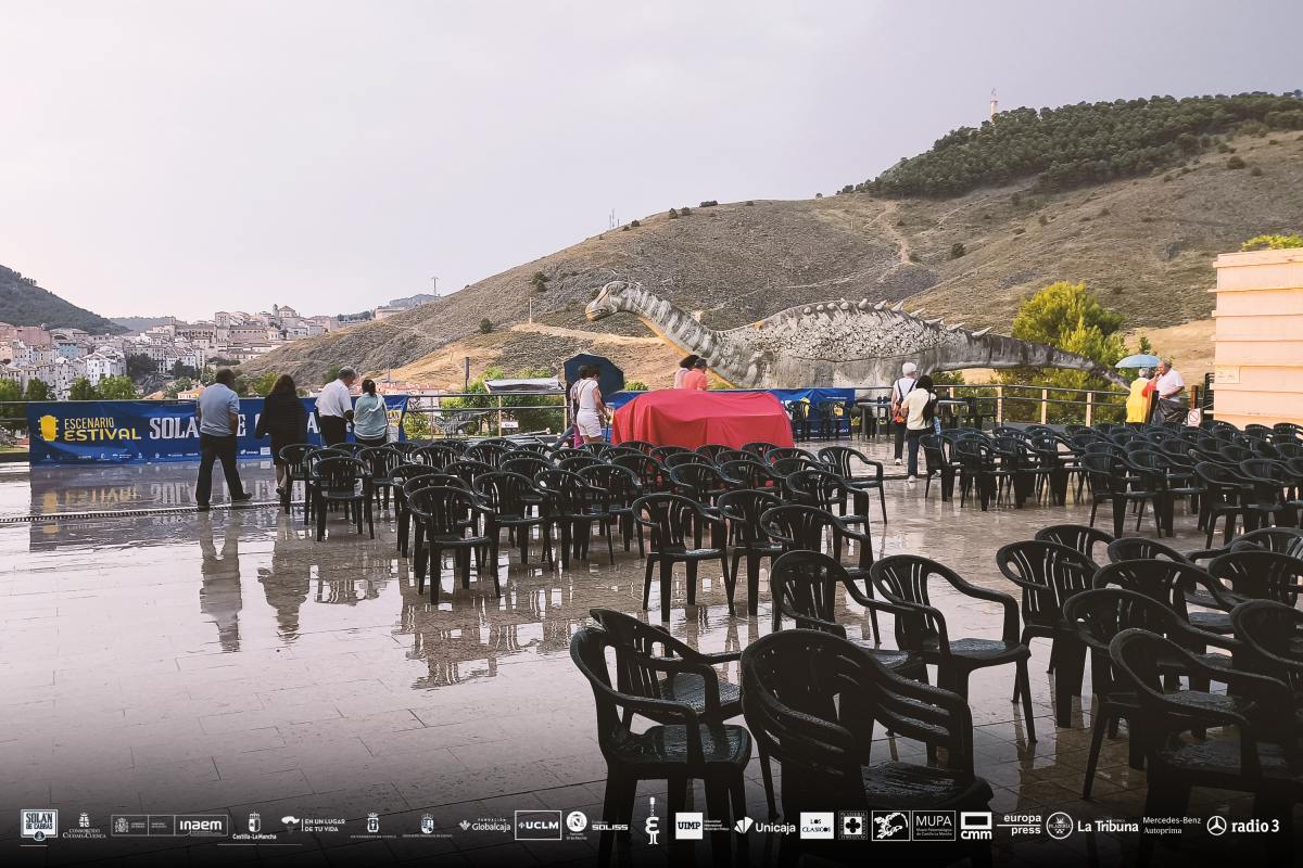 Estival Cuenca se vio obligado a cancelar su actuación de este miércoles cuando ya había arrancado el primero de los conciertos. El temporal de lluvia obligó a comenzar el espectáculo con cierto retraso, pero gracias a los esfuerzos del equipo de sonido y organización, el espacio quedó en perfectas condiciones para que la música comenzara a sonar de la mano de la banda conquense Petit Swing.