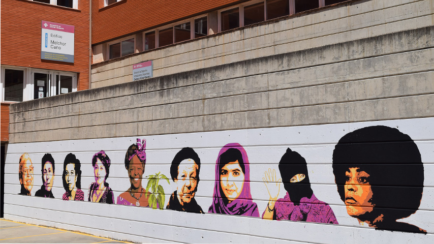 El mural MUJERES HISTÓRICAS es obra del colectivo Histéricas Conectivas, que en 2021 decidió sumarse al movimiento reivindicativo feminista que condenaba la vandalización del mural de mujeres en Ciudad Lineal (Madrid). Los rostros de Angela Davis, Silvia Federici, Antonia Fontanilla, Alice Guy, Soledad Casilda Hernáez, Wangari Maathaic, Rosa Parks, la Comandanta Ramona y Malala Yousafzai componen el elenco multirracial de esta pieza artística.