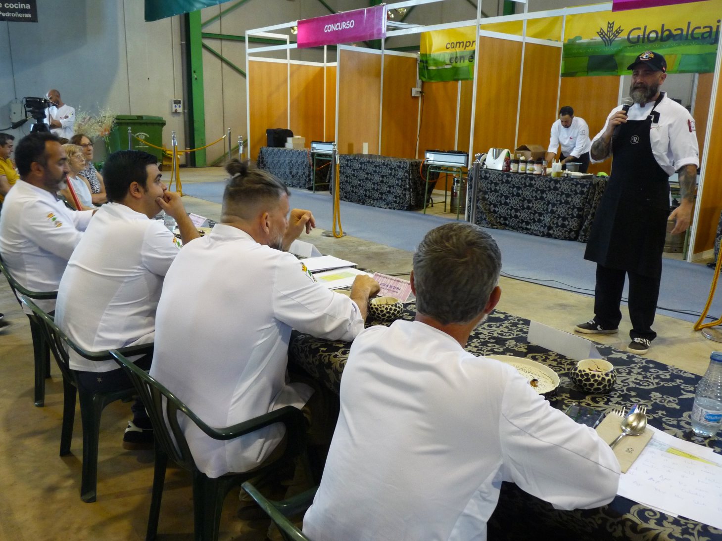 En el Jurado de Mesa se encontraban: Pablo Martínez (Restaurante Eszencia en Cartagena) y delegado Eurotoques en la Región de Murcia; Carlos Torres (Restaurante Capricho de los Torres en Villacañas) y delegado provincial de Eurotoques Toledo; y Jesús Quiros, (Obrador La Rosa en Alcázar de San Juán), Premio Nacional y Máster Chocolate 2025. Por su parte, los jurados de cocina fueron: Yolanda Fernández (Restaurante La Cátedra en Alcalá de Henares, y Daniel Lillo, I+D de la Abuela Cándida.