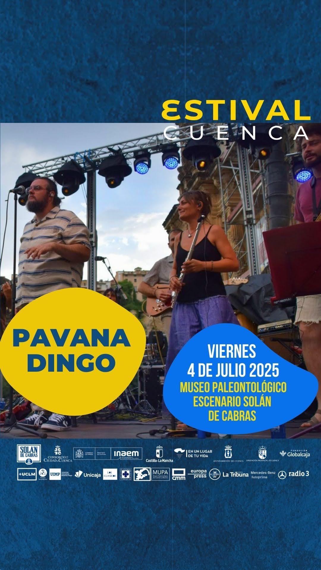 Además, abrirán esta velada los conquenses Pavana Dingo, una banda multitudinaria, de muy buen tono musical y de clara conexión con el público que ha participado en las últimas ediciones de Estival Cuenca y ha protagonizado uno de los directos más valorados por el público.