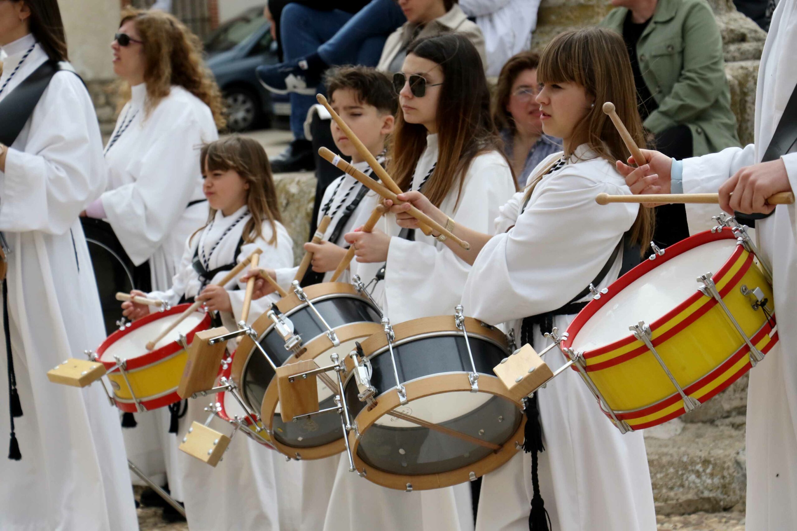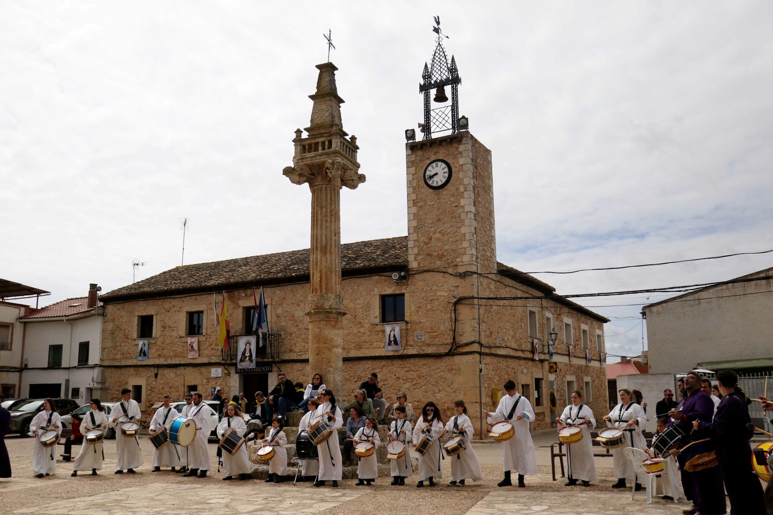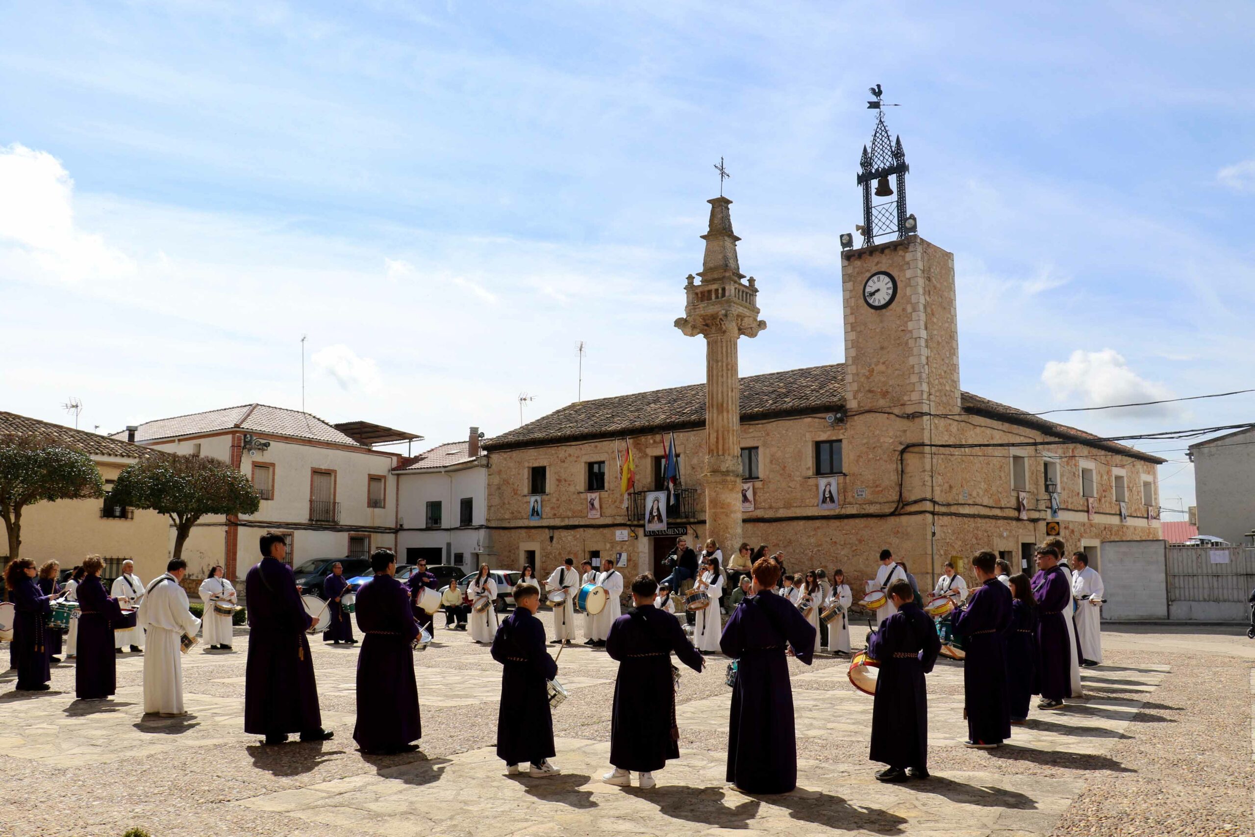 Mañana de tamborrada y Vía Crucis en Fuentenovilla. A continuación del repique de las campanas del Ángelus, que sonaba en la Iglesia de la Asunción de Fuentenovilla, comenzaba la VIII Edición de la Tamborrada en la villa alcarreña.