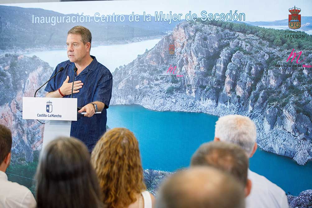El presidente de Castilla-La Mancha, Emiliano García-Page, ha inaugurado hoy en Sacedón el Centro de la Mujer. Desde allí ha avanzado que el 24 de julio se celebrará la Mesa Regional del Agua “donde queremos renovar el acuerdo global que tenemos en esta región, por lo que pido que vaya todo el mundo”, ha sugerido.