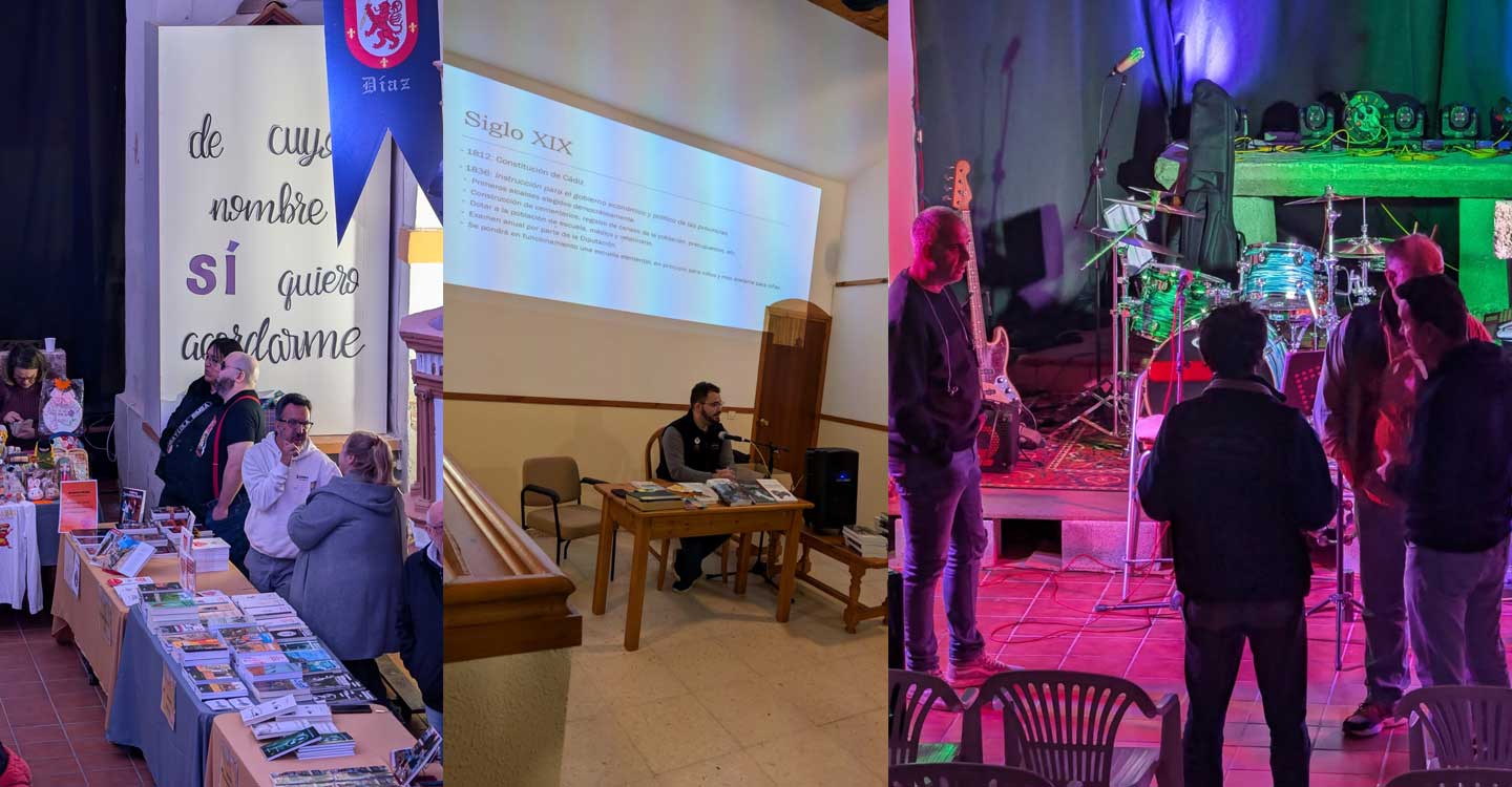 La conferencia “La biblioteca en el entorno rural” a cargo de Aurora López Ciruelos, con la parte del proyecto del Bibliobus, y de Miguel Llorente, con la historia de la Biblioteca de Bustares “El Telar”, tuvo un añadido de improvisado de última hora, en el que compañeros de que gestionan la biblioteca rural de Membrillera, otro pueblo del entorno del norte de Guadalajara, se sumaron al acto explicando su proyecto. Pero sin duda, el momento más emotivo fue el homenaje póstumo, realizado a D. Victor Garrido, fundador de la Biblioteca El Telar, por parte del pueblo.