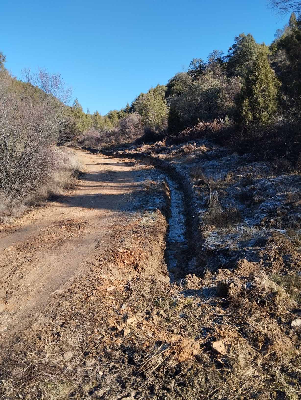 Entre las actuaciones realizadas se encuentra la limpieza del valladar desde la noria hasta Solosaces, una intervención necesaria para mantener en buen estado este tramo y facilitar su uso. Asimismo, se ha procedido a la poda de ramas en el camino de Retiendas y en varias cunetas, con el objetivo de mejorar la evacuación del agua y evitar problemas de acumulación, acompañada de la colocación de tubos para un mejor drenaje.