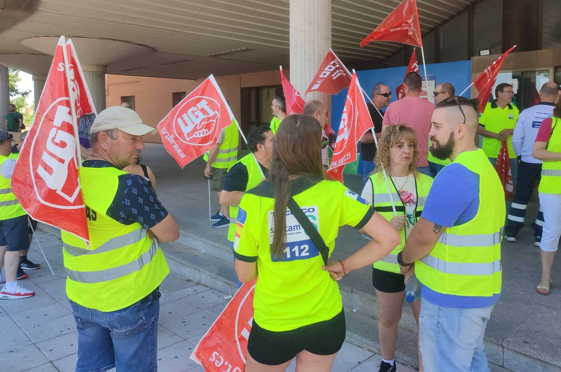 Los trabajadores y trabajadoras del transporte sanitario de Castilla-La Mancha han vuelto a salir hoy a la calle para reclamar mejoras en sus condiciones laborales así como un pliego de condiciones para la concesión de este servicio público en el que sea posible asumir el preacuerdo de convenio colectivo firmado entre las empresas y los representantes de estos profesionales.