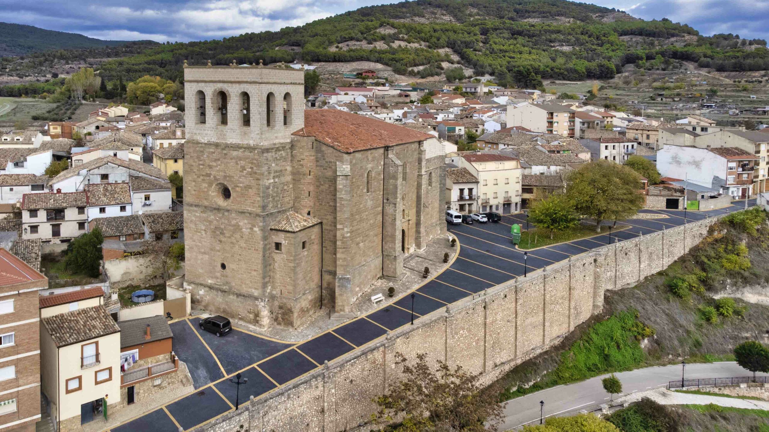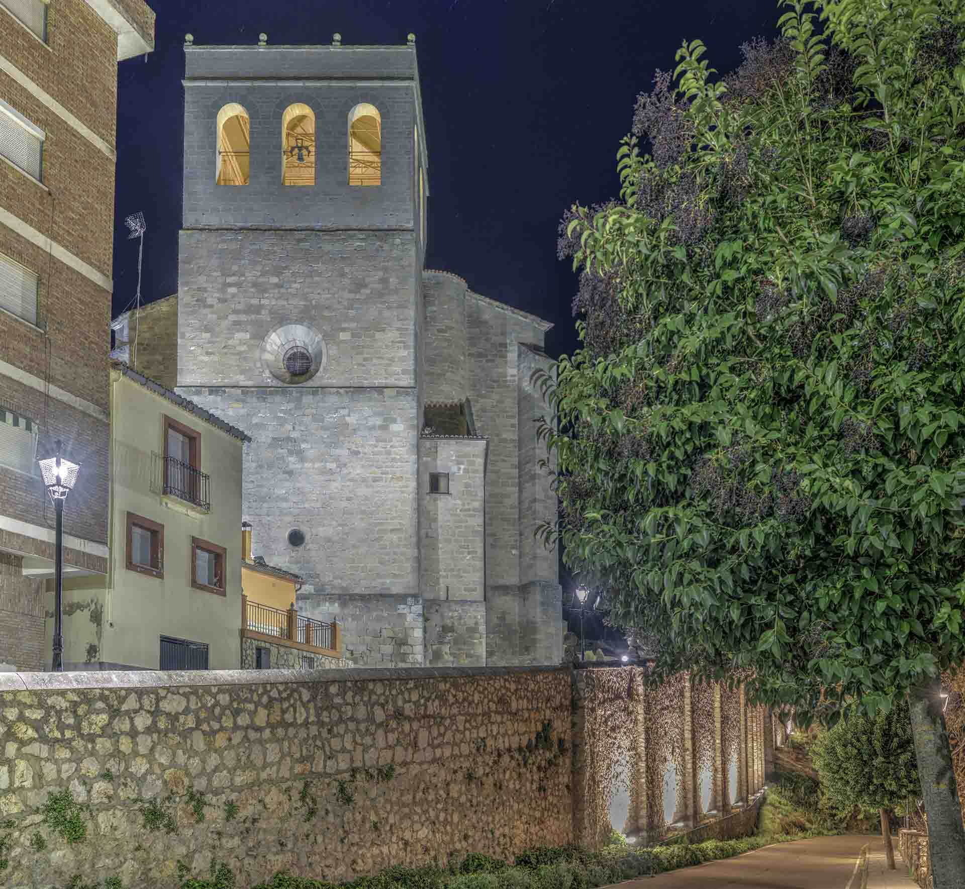 Además, se ha de mencionar la ermita de Nuestra Señora de los Remedios –en el siglo XVIII– y el recinto amurallado de la población. Uno de los pocos vestigios que queda de dicha construcción defensiva se observa frente a la parroquia. Desde el Medioevo, esta barbacana formó parte de la fortificación que en la villa se construyó como elemento imprescindible para la defensa y consolidación de los territorios reconquistados. A partir del siglo XVI, el perímetro cayó en decadencia, debido –en gran parte– al ascenso demográfico de la población, consecuencia de la nueva realidad política y social, que hizo que perdiera su sentido defensivo. De la muralla existen aún hoy algunos restos, como la torre cuadrada, conocida como Torreón, que se erige junto a la Plaza de Toros o los lienzos de la Fuente del Oro.