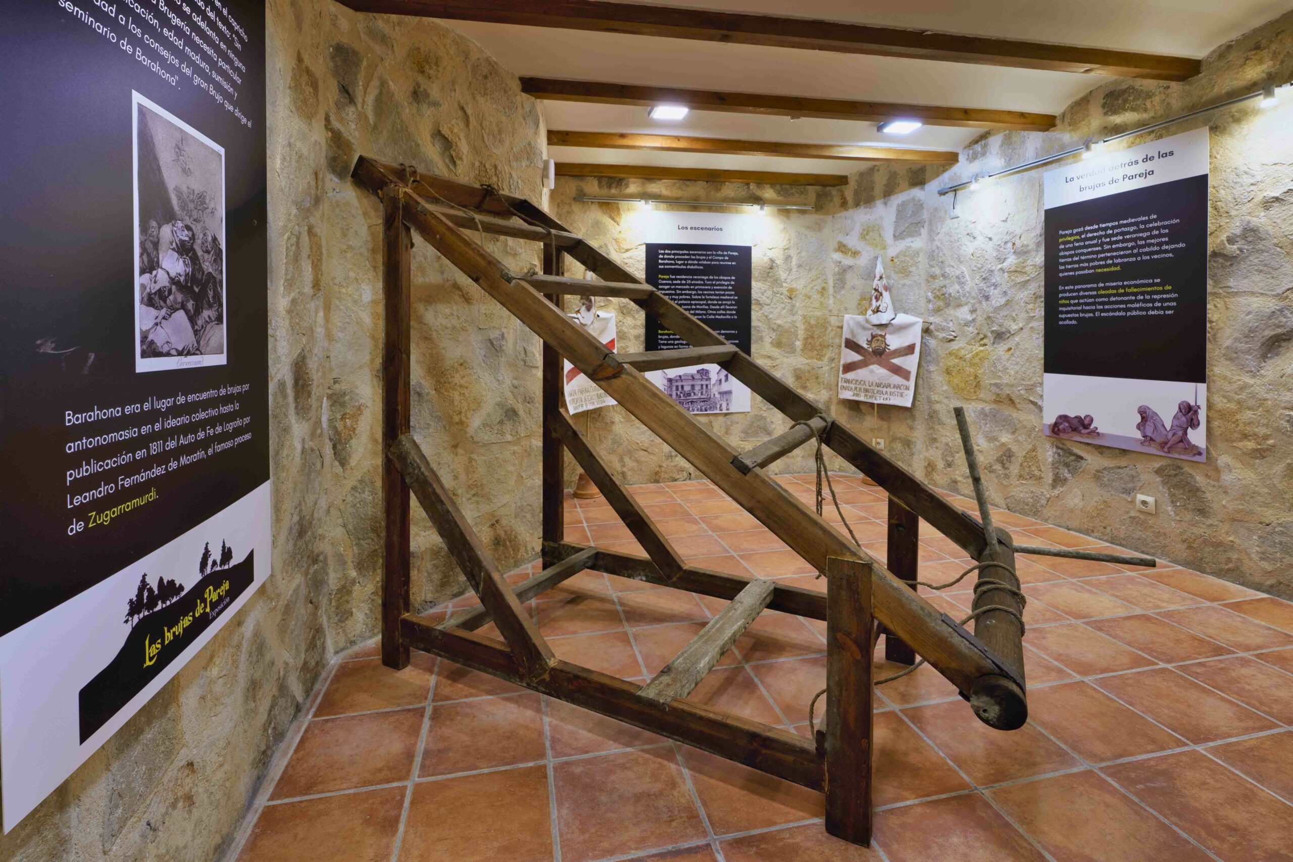 Así, el 30 de abril de aquel año (2022) se procedió a la apertura y primera visita guiada del museo creado en el interior del torreón, un lugar emblemático, posiblemente el edificio más antiguo de Pareja, que el Ayuntamiento ha venido recuperando durante años, y que ya estaba preparado como espacio museístico, con el apoyo del grupo de desarrollo rural FADETA. Y es emblemático porque también se retuvo entre sus muros a una de las reas acusadas como brujas en uno de los diferentes procesos judiciales realizados a mediados del siglo XVI por el Tribunal de la Inquisición de Cuenca. Los elementos del museo también han sido realizados y diseñados por el autor del libro, de manera que el lugar se ha convertido en visita obligada para quienes se acercan a conocer Pareja. En octubre de 2024 se elaboró para el Museo de las Brujas de Pareja, en el torreón medieval, su nuevo audiovisual: un viaje inmersivo al mundo de la brujería. Con este novedoso recurso multimedia, el Museo ha ampliado su oferta para ofrecer al espectador una narrativa visual y sonora de un mundo de misterios, creencias y documentos históricos extraídos de los archivos de la inquisición de Cuenca.