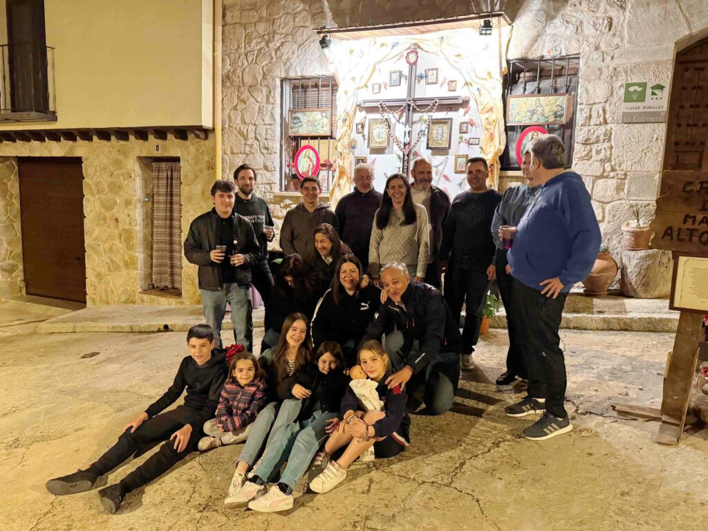 En la Plaza del Altozano, vecinos de todas las edades colaboraron en la cruz del barrio, como Óscar Ranera, quien destacaba el carácter familiar de la tradición. “Nuestros padres y antepasados ya la hacían, y estamos orgullosos de seguir nosotros con esta tradición. A nuestros niños les encanta”. La cruz se empieza a montar una semana antes y los días festivos, los vecinos comparten comidas y cenas en comunidad.