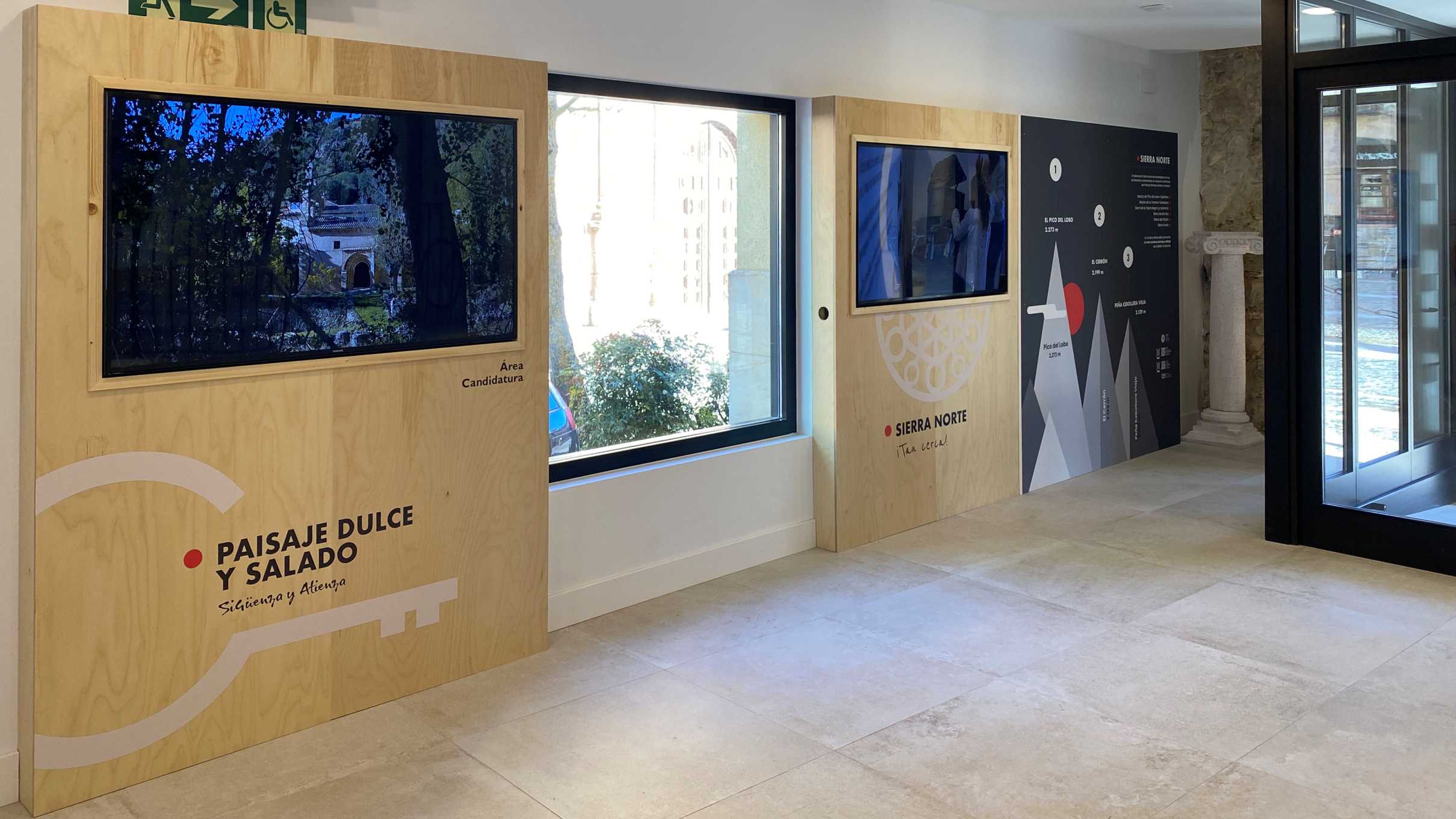 “El espacio interior busca crear un ambiente acogedor y funcional en el que el visitante pueda moverse libremente, recabando toda la información que necesite para su visita de la forma que elija. Las imágenes de las pantallas introducen al usuario en distintas áreas temáticas que le proponen multitud de recorridos y alternativas para escoger la que mejor se adapte a sus preferencias. Hemos querido crear una imagen corporativa fuerte que refleje el carácter innovador y dinámico de una ciudad medieval del siglo XXI”, valora Arantxa Perez, concejala de Turismo del Ayuntamiento de Sigüenza.