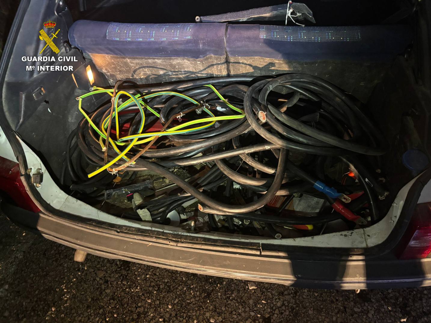 En el momento de la detención, otros dos individuos se dieron a la fuga campo a través, abandonado en el lugar diversas herramientas de corte y el cable que habían conseguido sustraer.