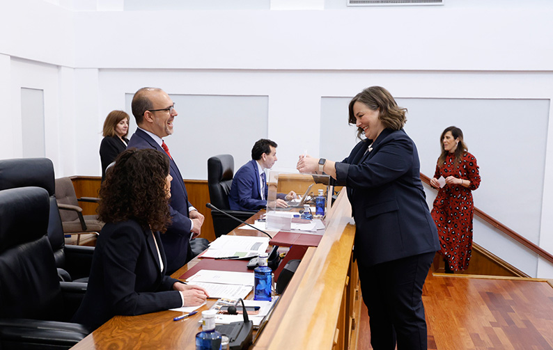 La Cámara Autonómica ha procedido también hoy a la elección de la secretaría primera de la Mesa, hasta ahora ocupada por Mora. La votación en urna ha arrojado un resultado de 17 votos a favor de la candidatura socialista, García Saco, con 11 abstenciones. De este modo, la diputada de Camarena ha ocupado ya su puesto en la Mesa dentro del Salón de Plenos.